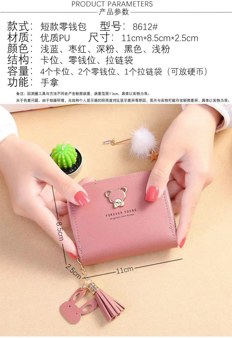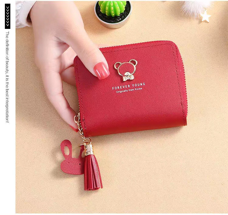 现货新款韩版女士钱包女短款卡通可爱小熊流苏女学生零钱包拉链包