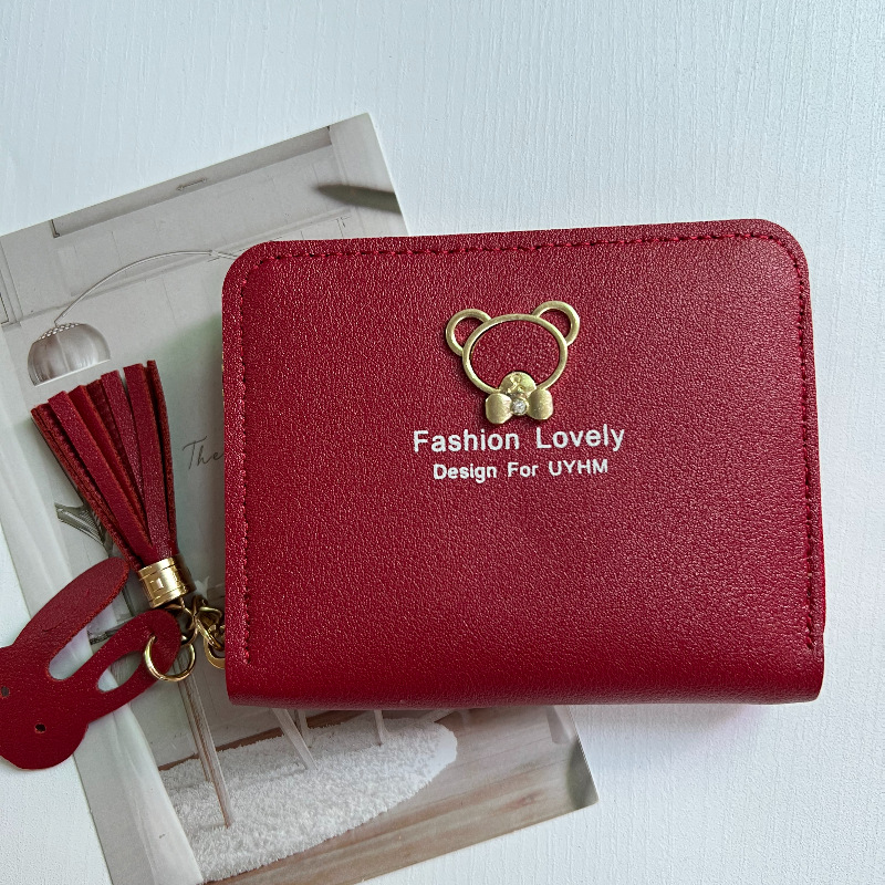 제조 업체 새로운 자리 숙녀 지갑 여성 짧은 만화 귀여운 곰 술 여성 학생 동전 지갑 지퍼 가방스토어 가기