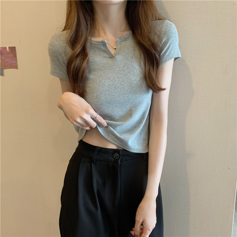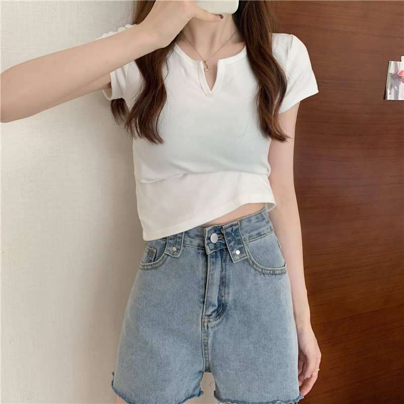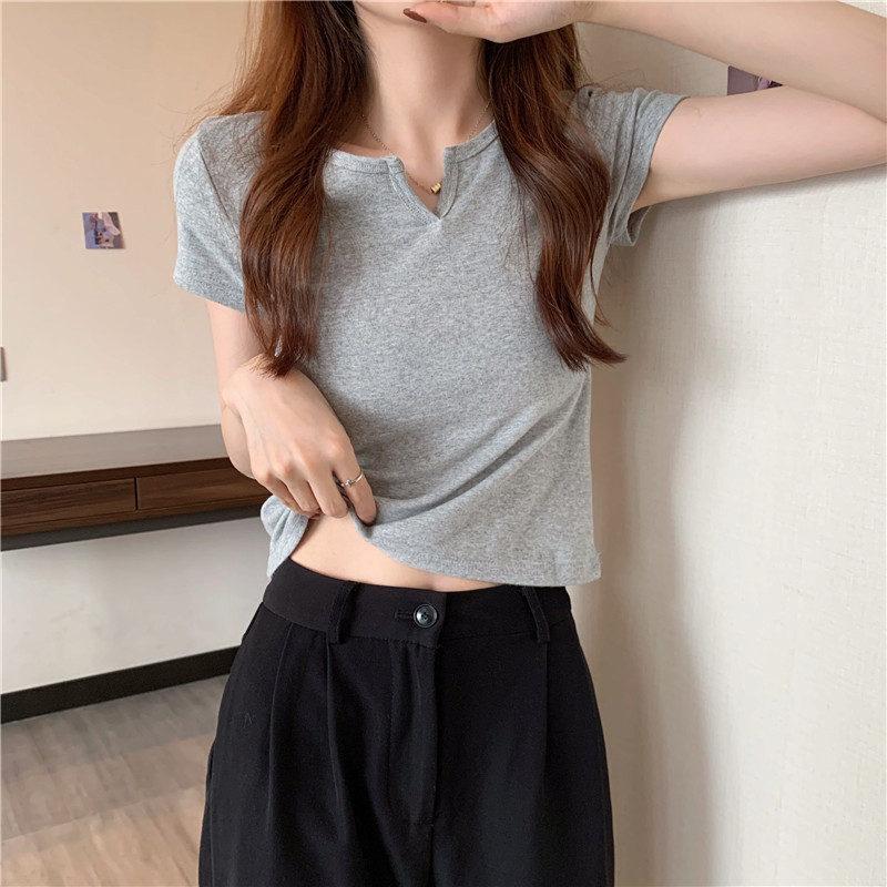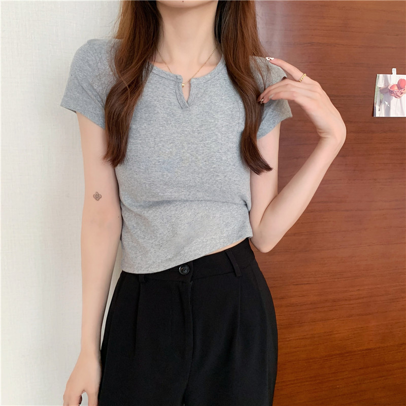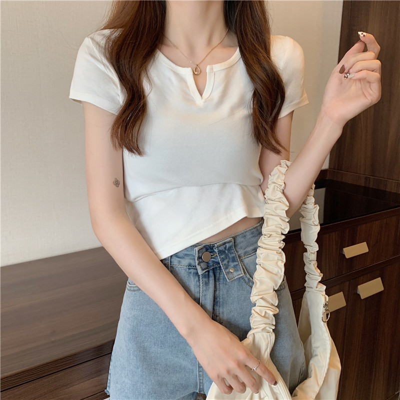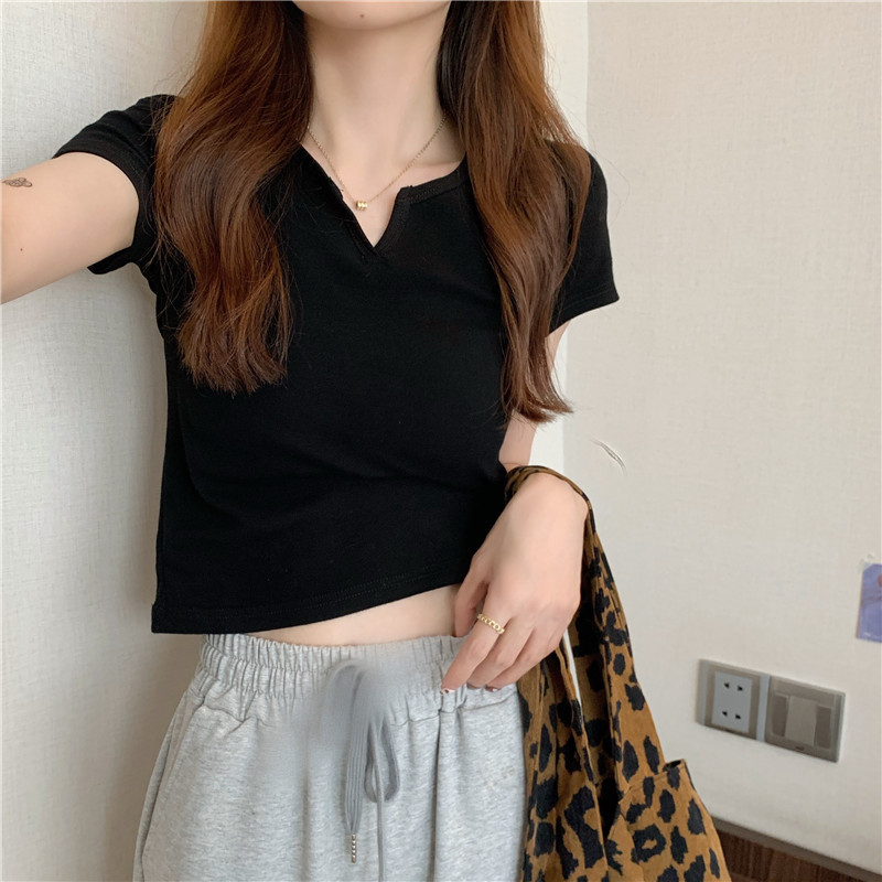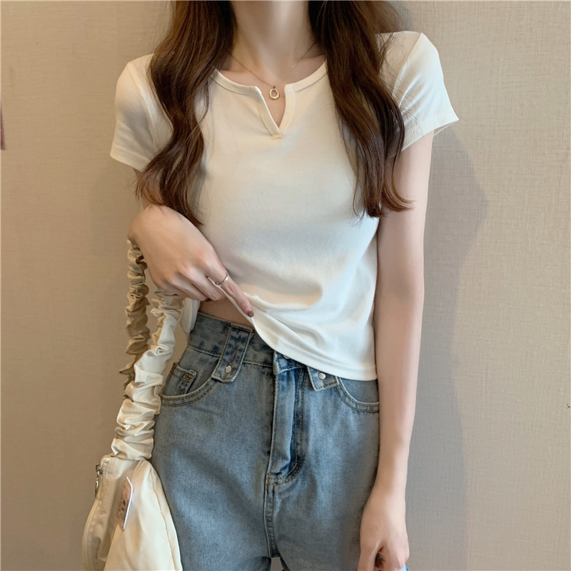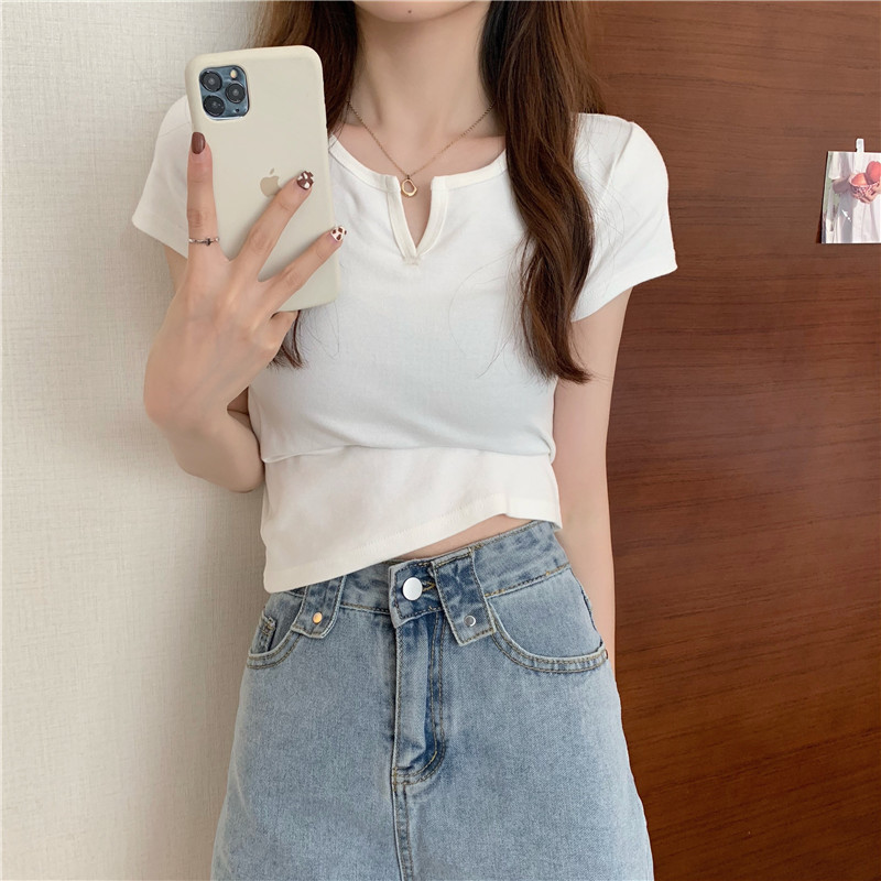 여름용 여성용 디자인 슬림핏 크롭탑 핫걸 여성 티셔츠 반팔 학생 상의 2025 신상 의류스토어 가기