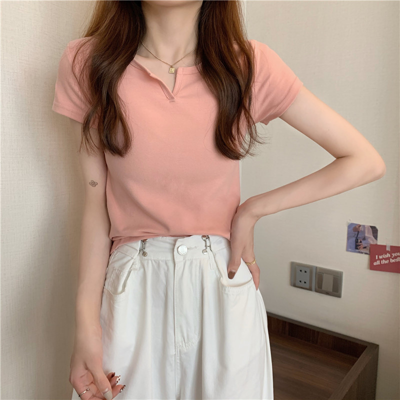 여름용 여성용 디자인 슬림핏 크롭탑 핫걸 여성 티셔츠 반팔 학생 상의 2025 신상 의류