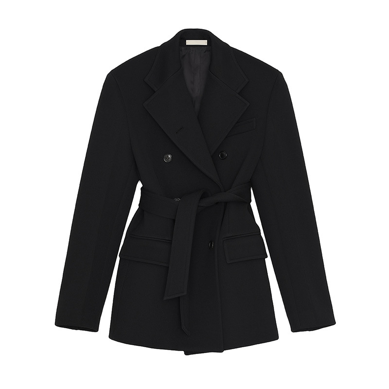 여성을위한 한국 스타일 모직 코트 가을, 겨울 새로운 한국 틈새 클래식 블랙 슬림 피트 더블 브레스트 탑