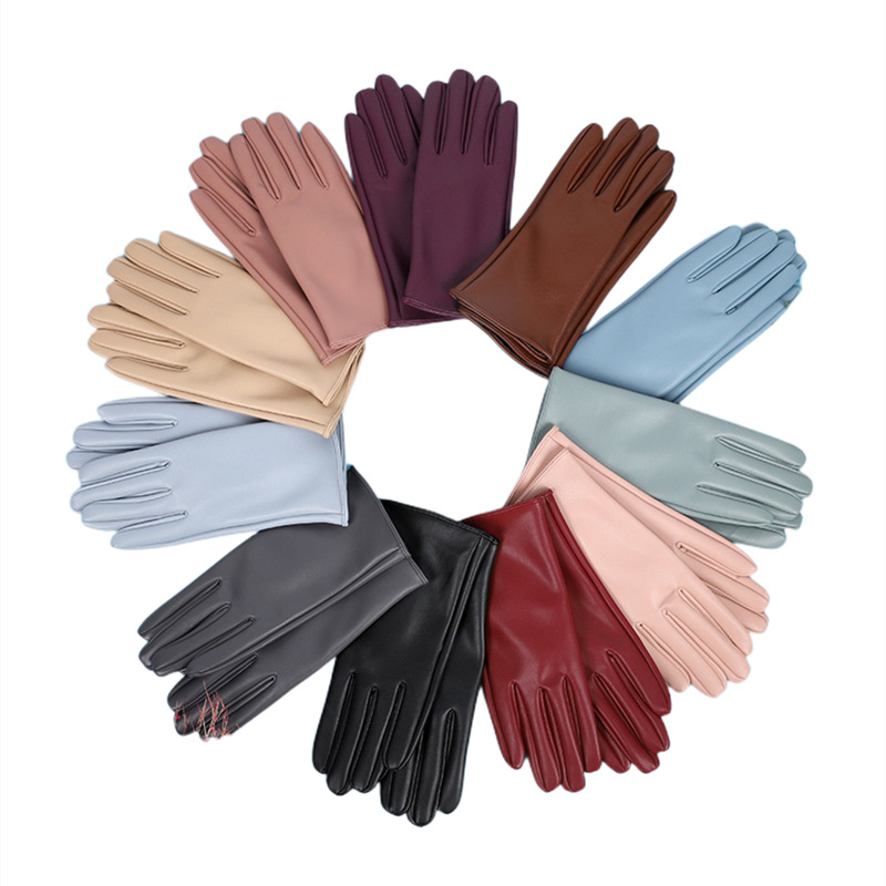 가죽 장갑 스타일 다채로운 남성과 여성의 가죽 PU 장갑 기모 따뜻한 방풍 단색 승마 장갑