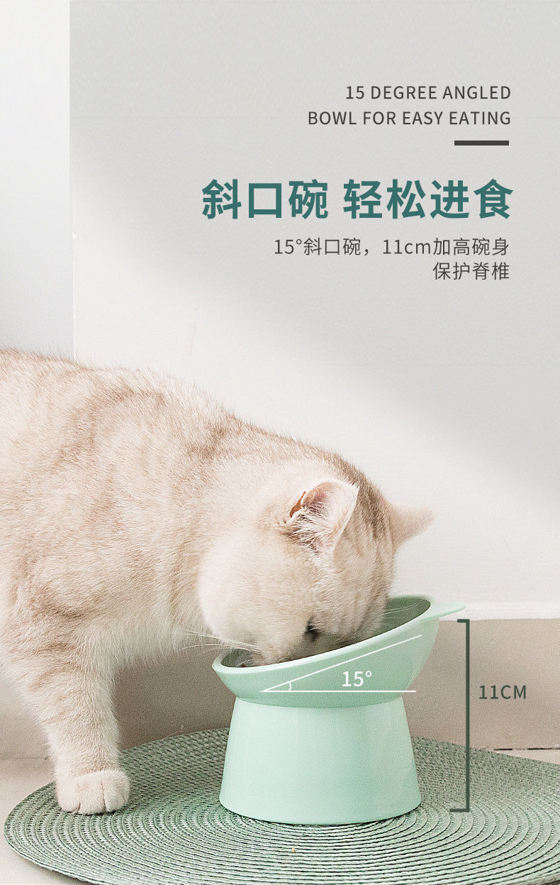 애완동물 사발 높은 발 비스듬한 목 보호 고양이 사발 논슬립 전복 방지 뿌리기 고양이 사발 개 사료 대야 애완 동물 용품 도매스토어 가기