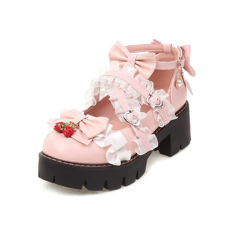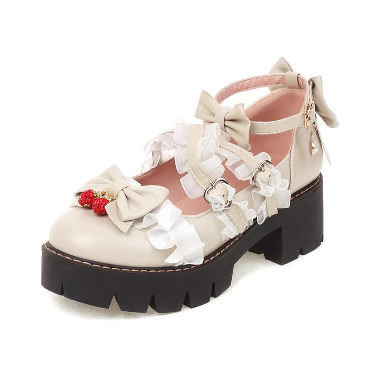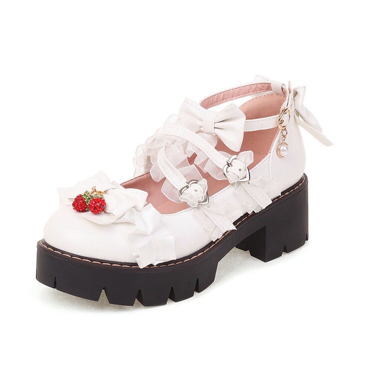 Wish 크로스 국경 대외 무역 플러스 사이즈 여성 신발 2022 봄 새로운 달콤한 활 라운드 헤드 두꺼운 바닥 버클 여성을위한 단일 신발스토어 가기