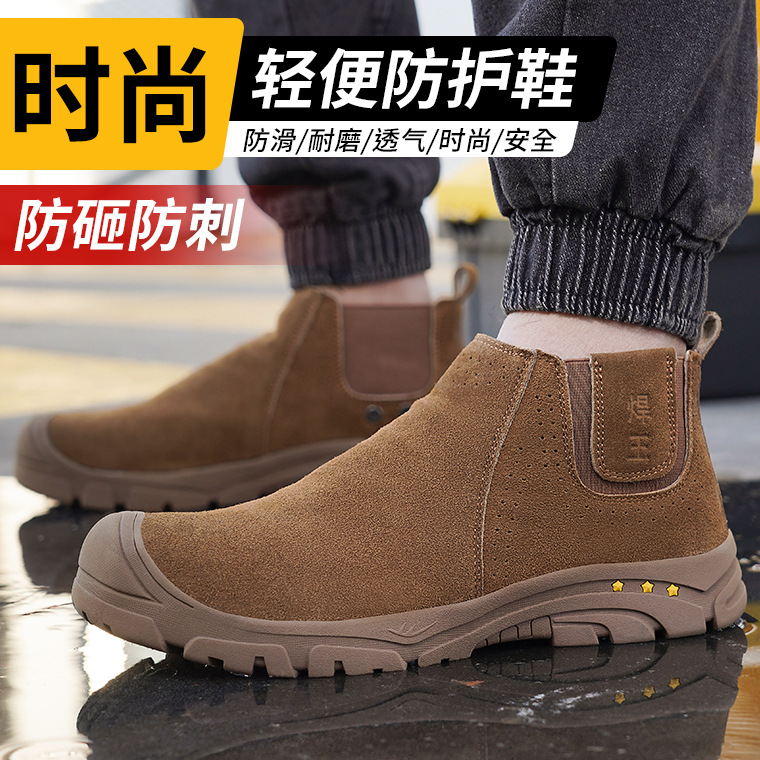 미드탑 스웨이드 방지 용접 신발, 슬립온 경량 보호 신발, 펑크 방지 안전 신발, 용접 신발