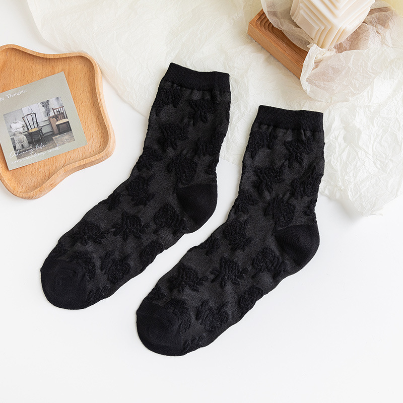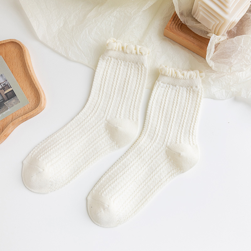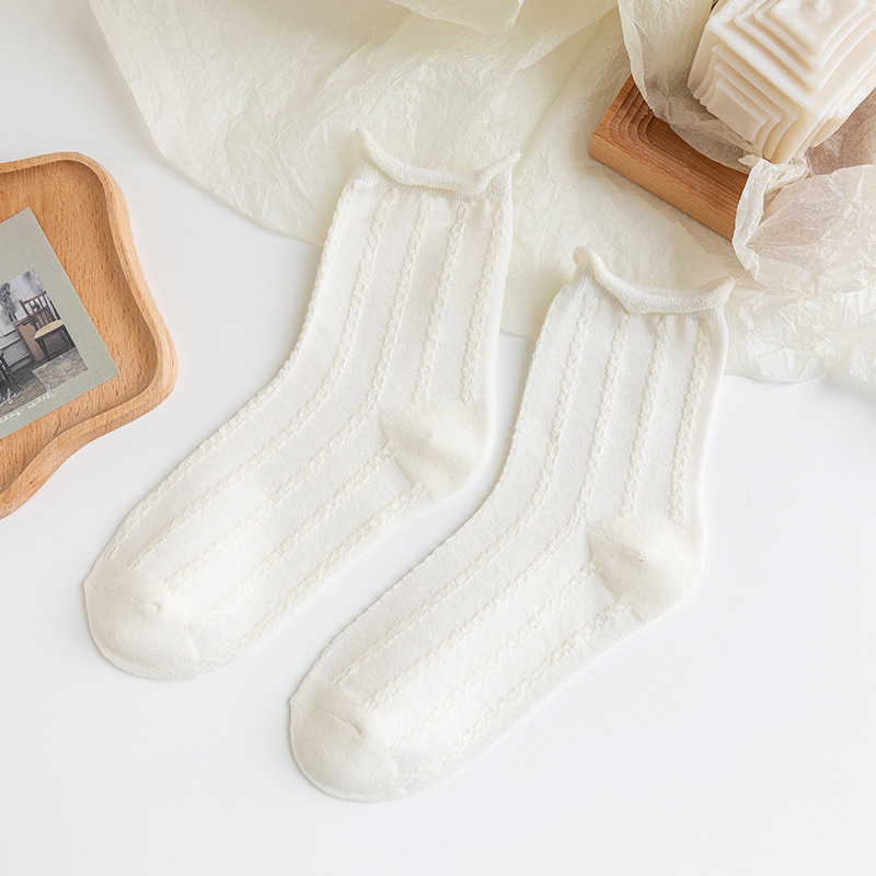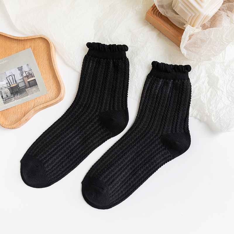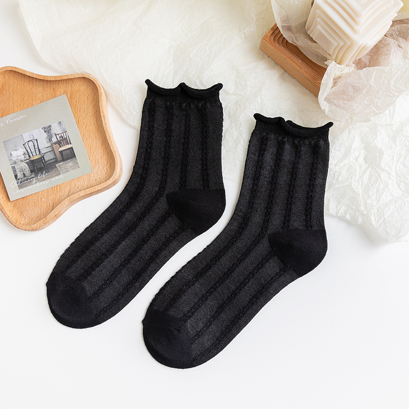 흑백 양말 여성용 봄 가을 귀여운 일본식 jk 양말 로리타 레이스 롱 양말 인스 트렌드 중간 길이 양말 면 여름용스토어 가기