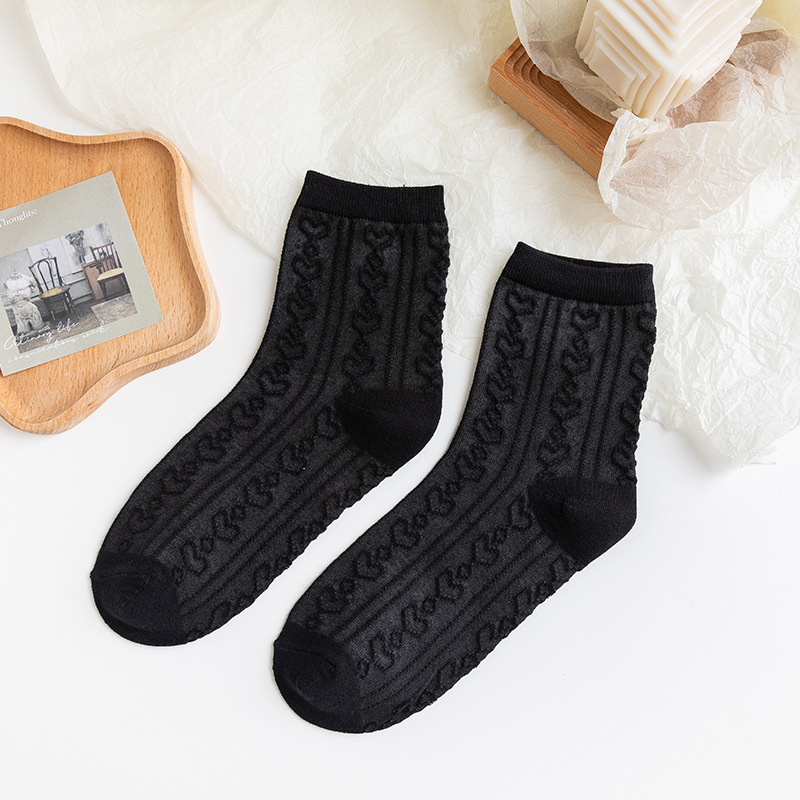흑백 양말 여성용 봄 가을 귀여운 일본식 jk 양말 로리타 레이스 롱 양말 인스 트렌드 중간 길이 양말 면 여름용