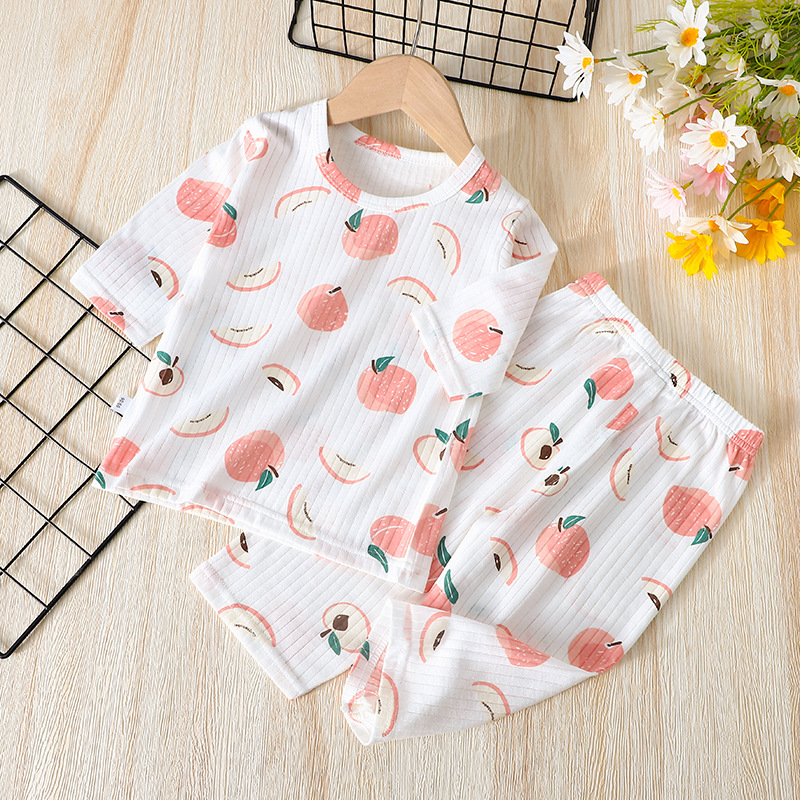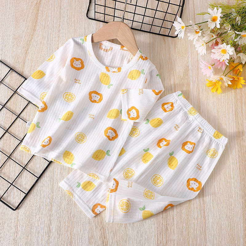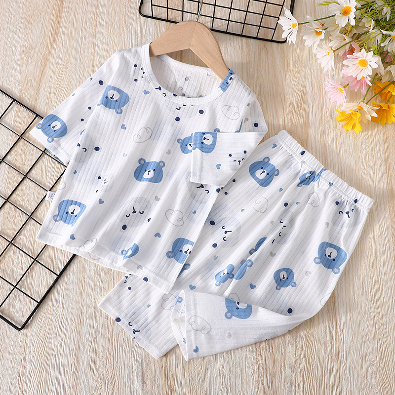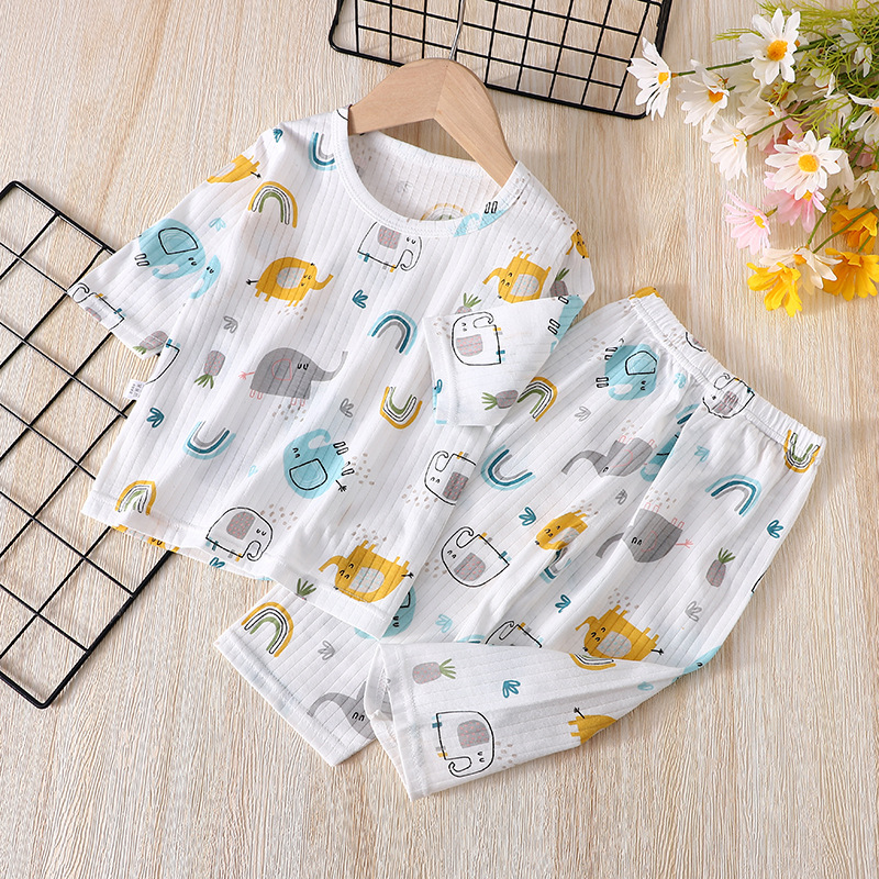 어린이 반팔 순면 홈웨어 세트, 7부 소매 에어컨 옷, 1-6세 남아용 7부 바지, 여아용스토어 가기