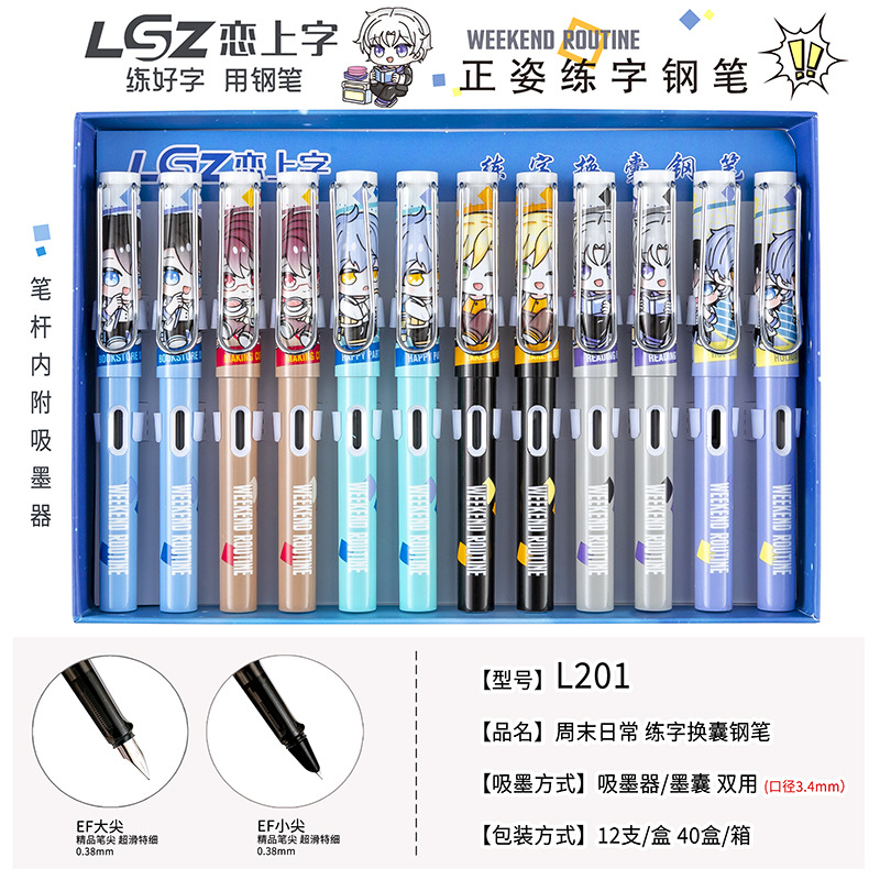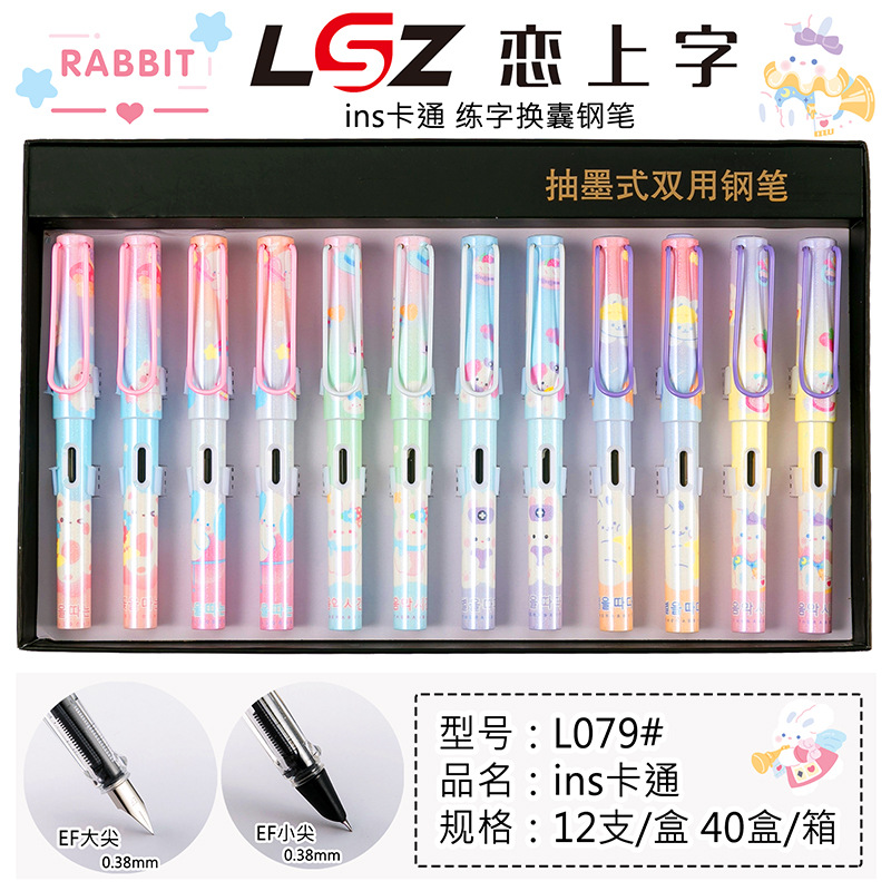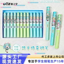 단어에 대한 사랑 교체 가능한 잉크 백 잉크 흡입 장치 소년과 소녀 어린이 초보자 이리듐 골드 펜 12 박스 학생스토어 가기
