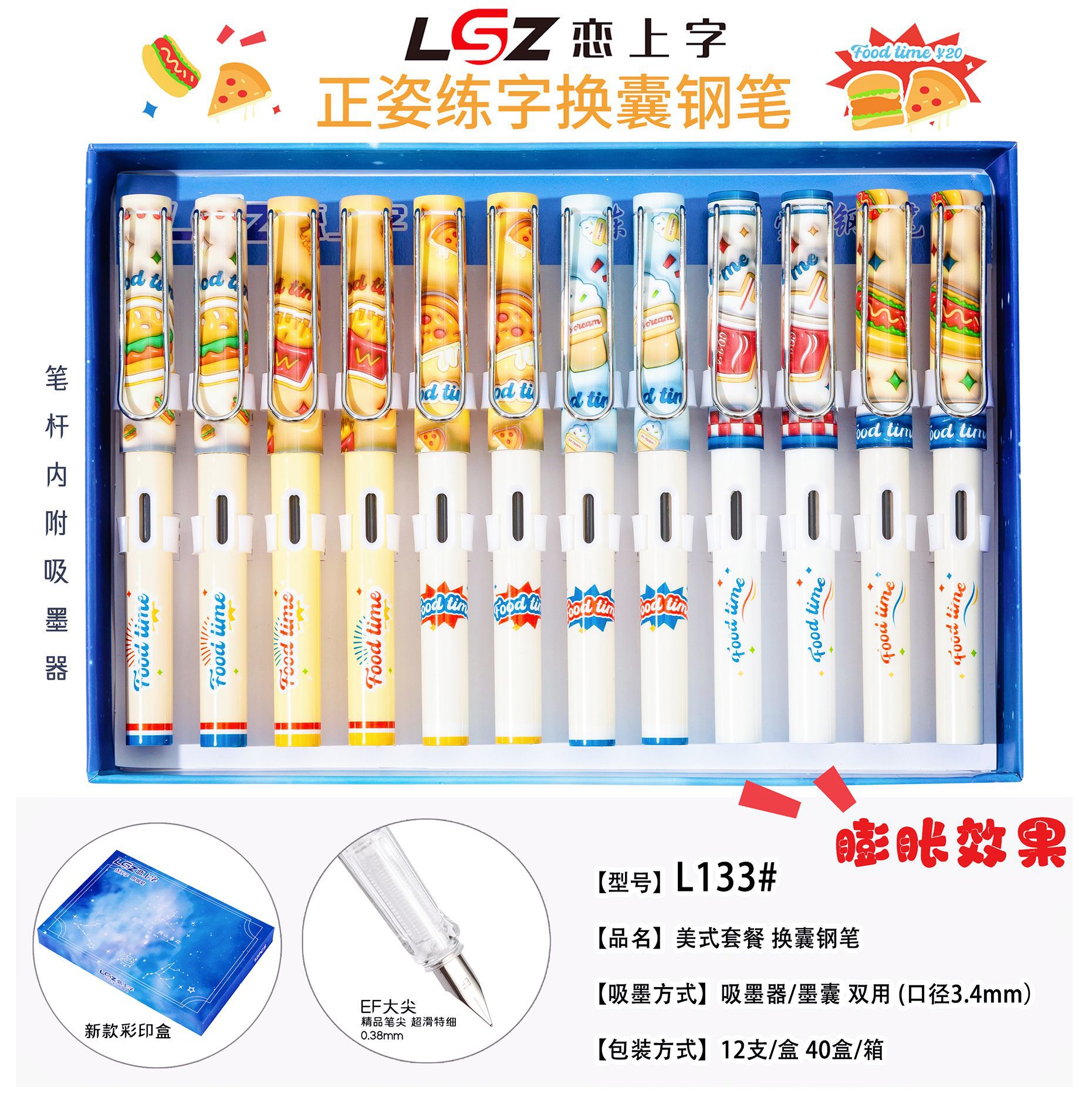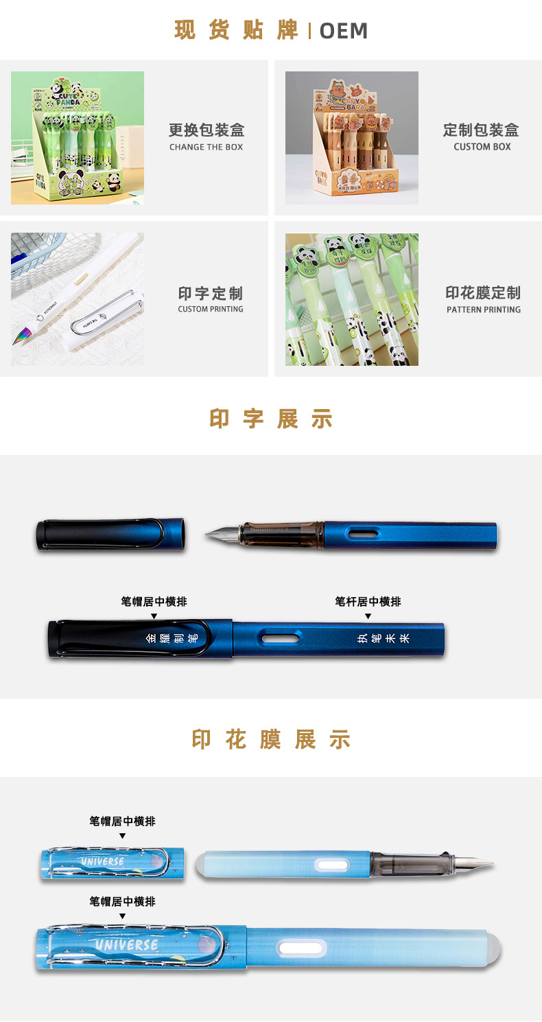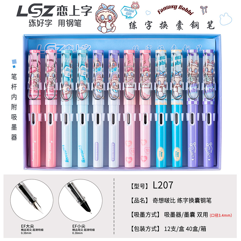 단어에 대한 사랑 교체 가능한 잉크 백 잉크 흡입 장치 소년과 소녀 어린이 초보자 이리듐 골드 펜 12 박스 학생