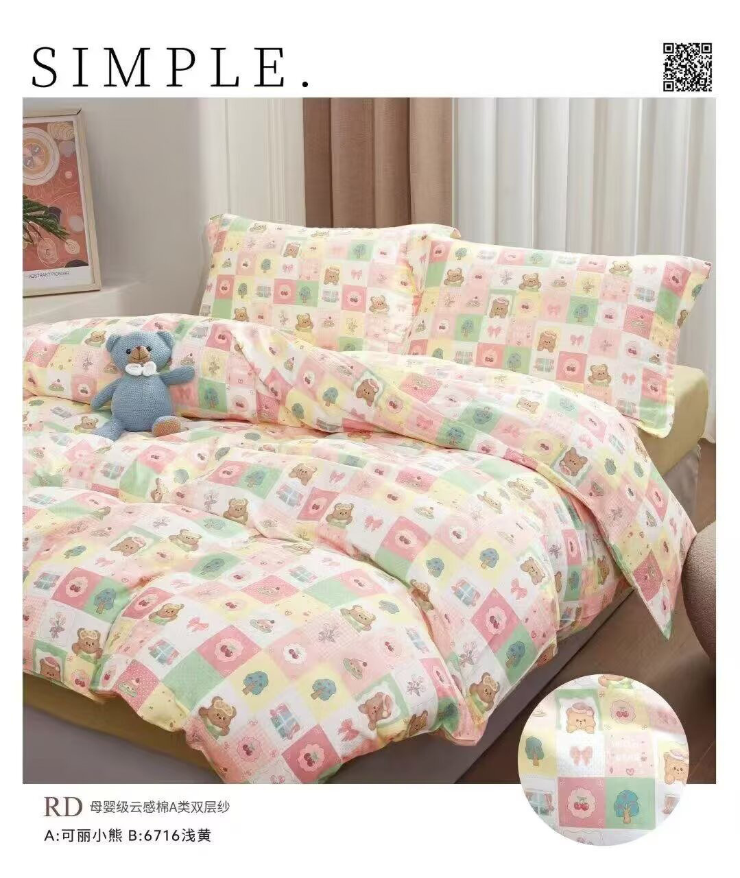 自有工厂生产,各个环节始自源头,量大价格从优,欢迎咨询!支持成品定制!如需更多花型,可随时联系客服!全棉婴童双层纱面料详情_01
