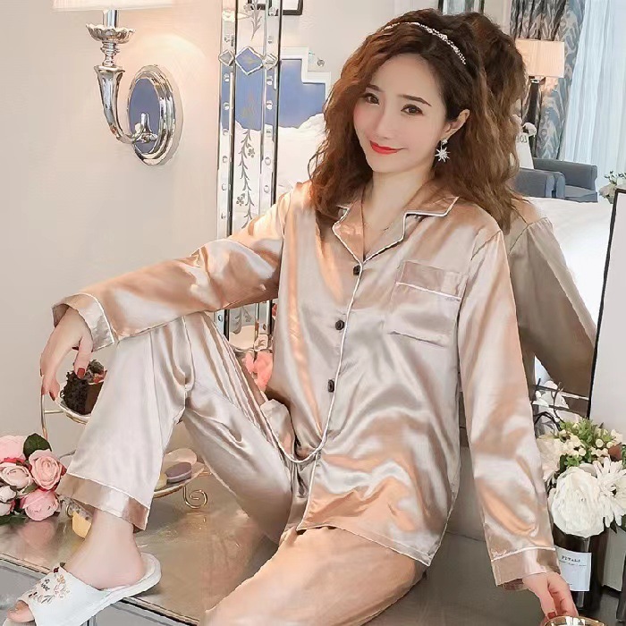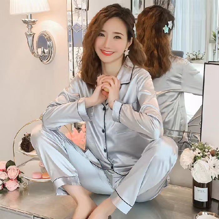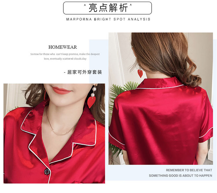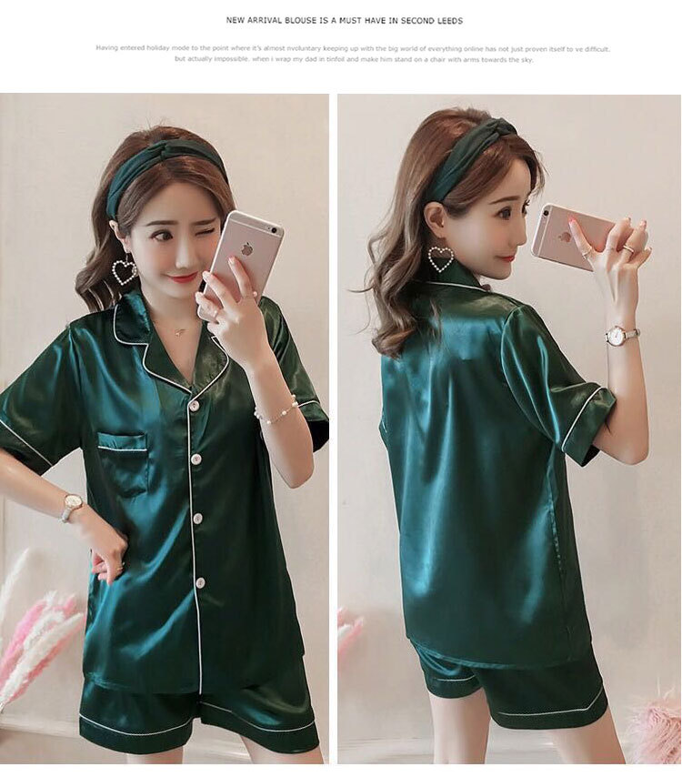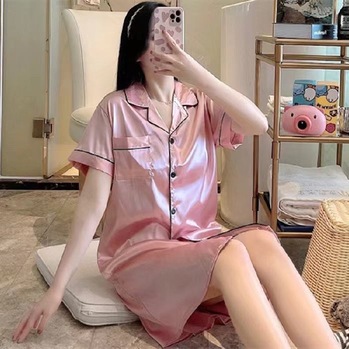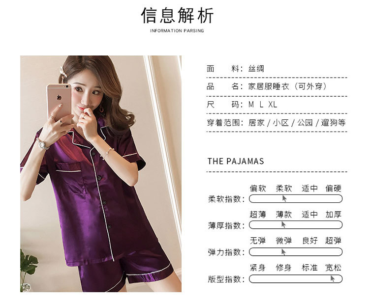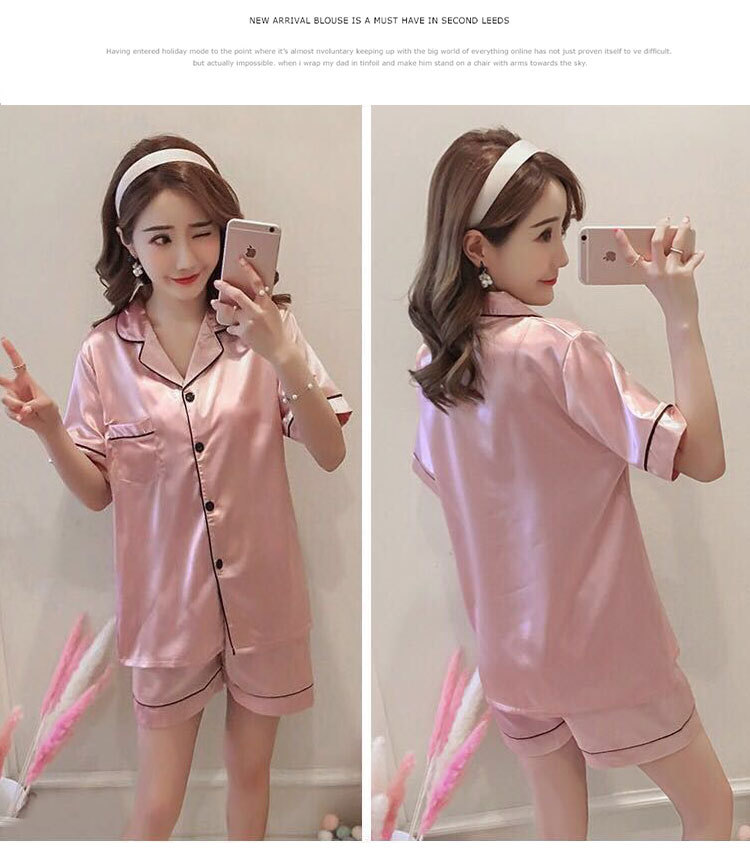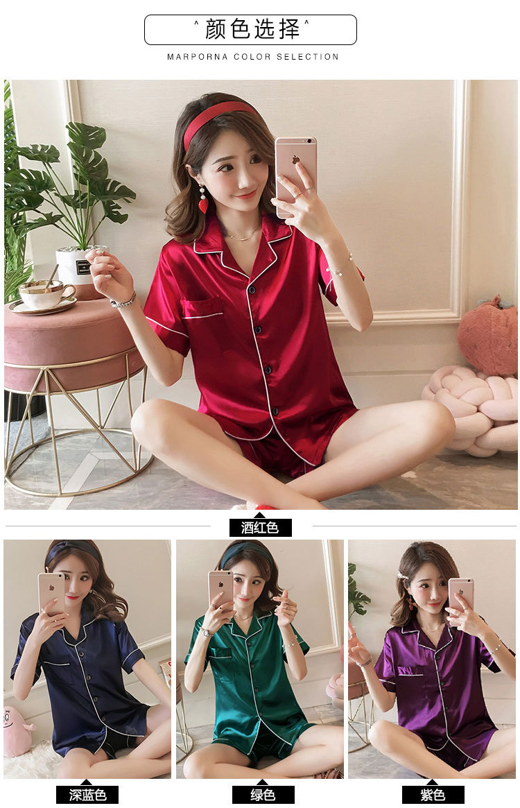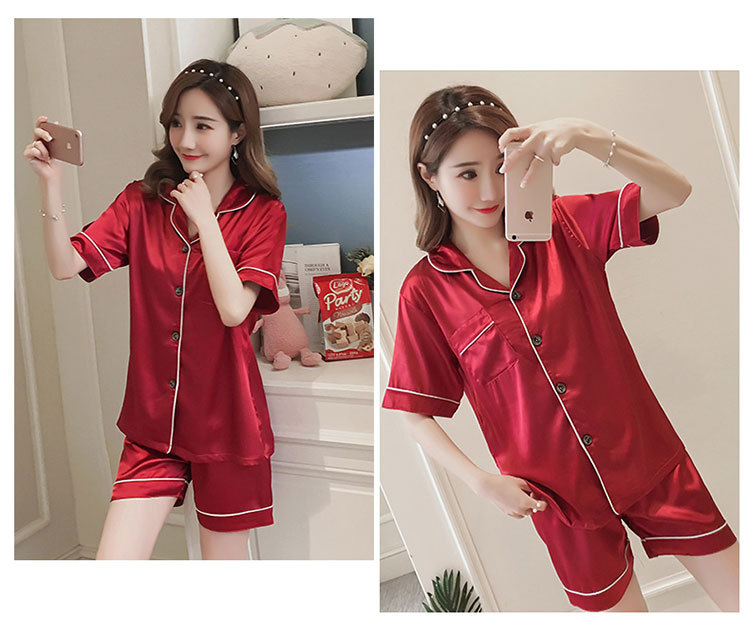 아이스 실크 잠옷 여자의 여름 카디건 반팔 반바지 실크 느슨한 플러스 사이즈 크로스 보더 가정 옷 세트 M-5XL스토어 가기