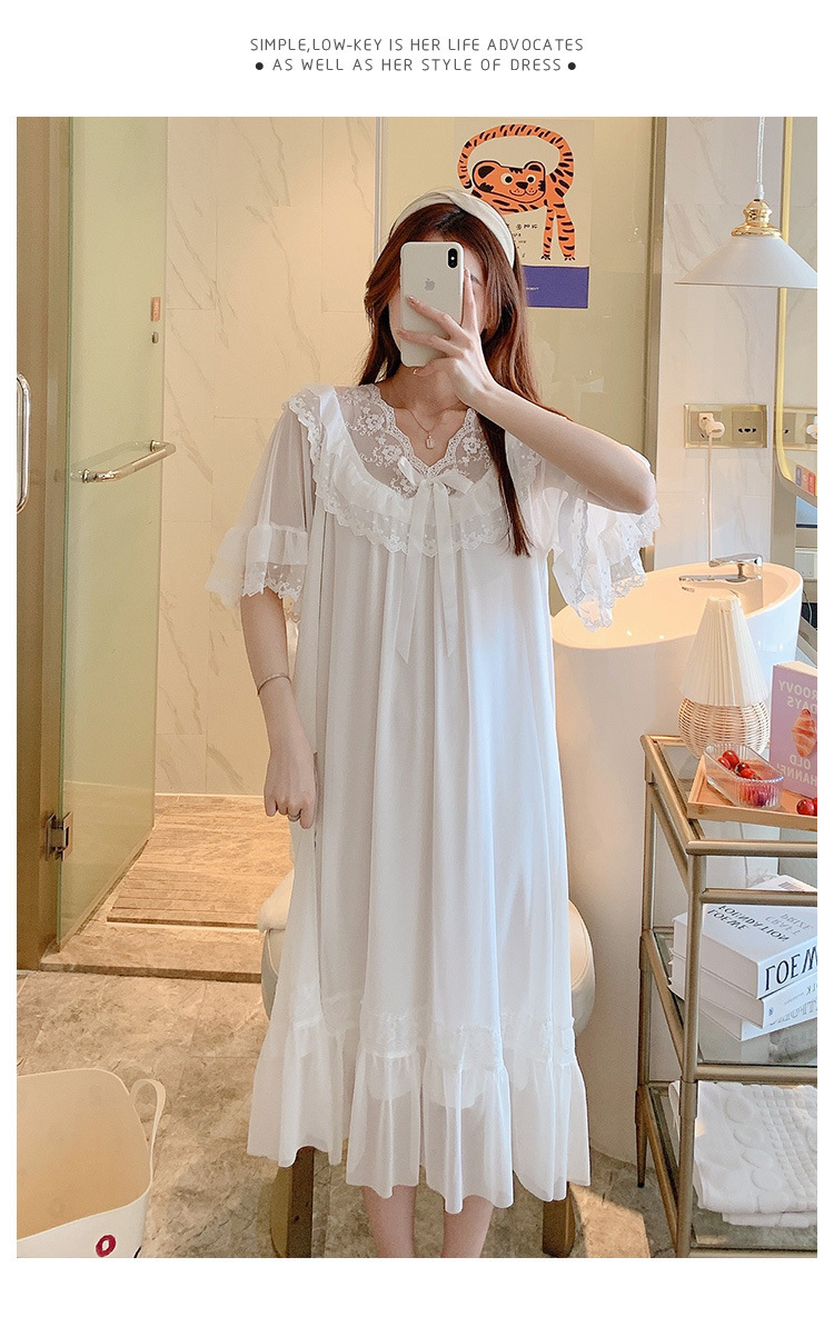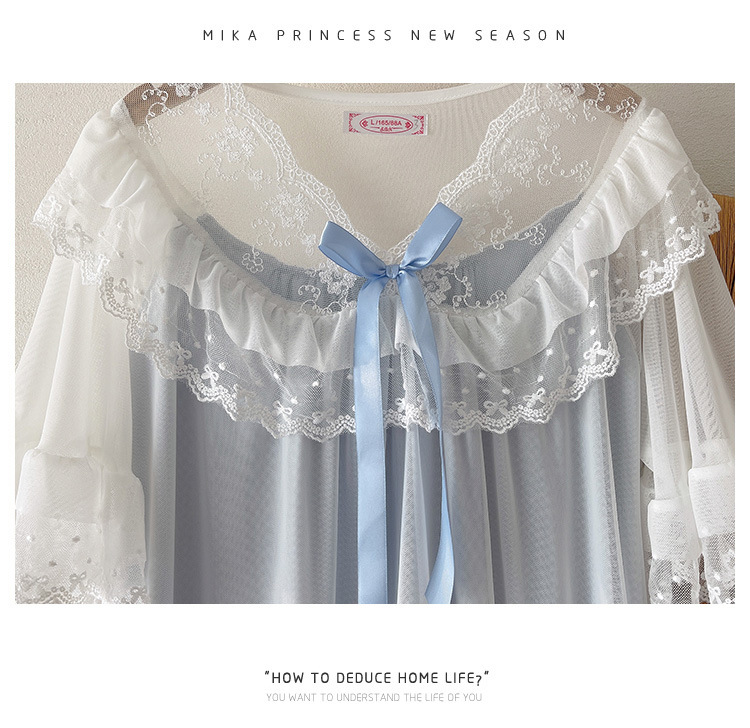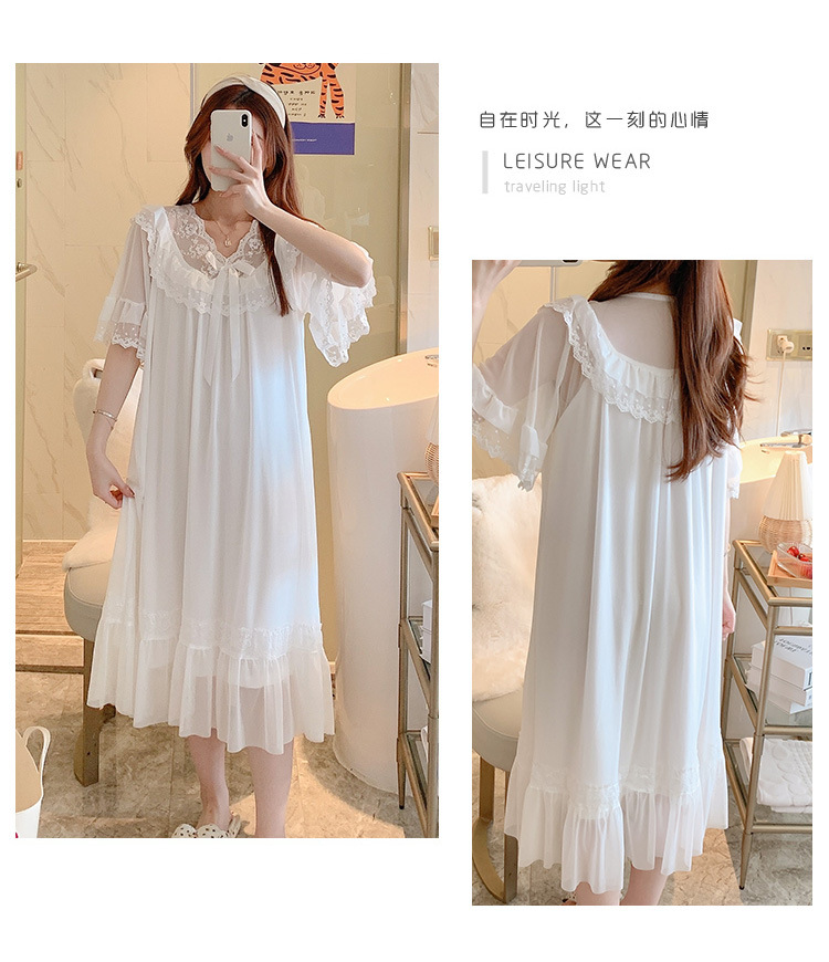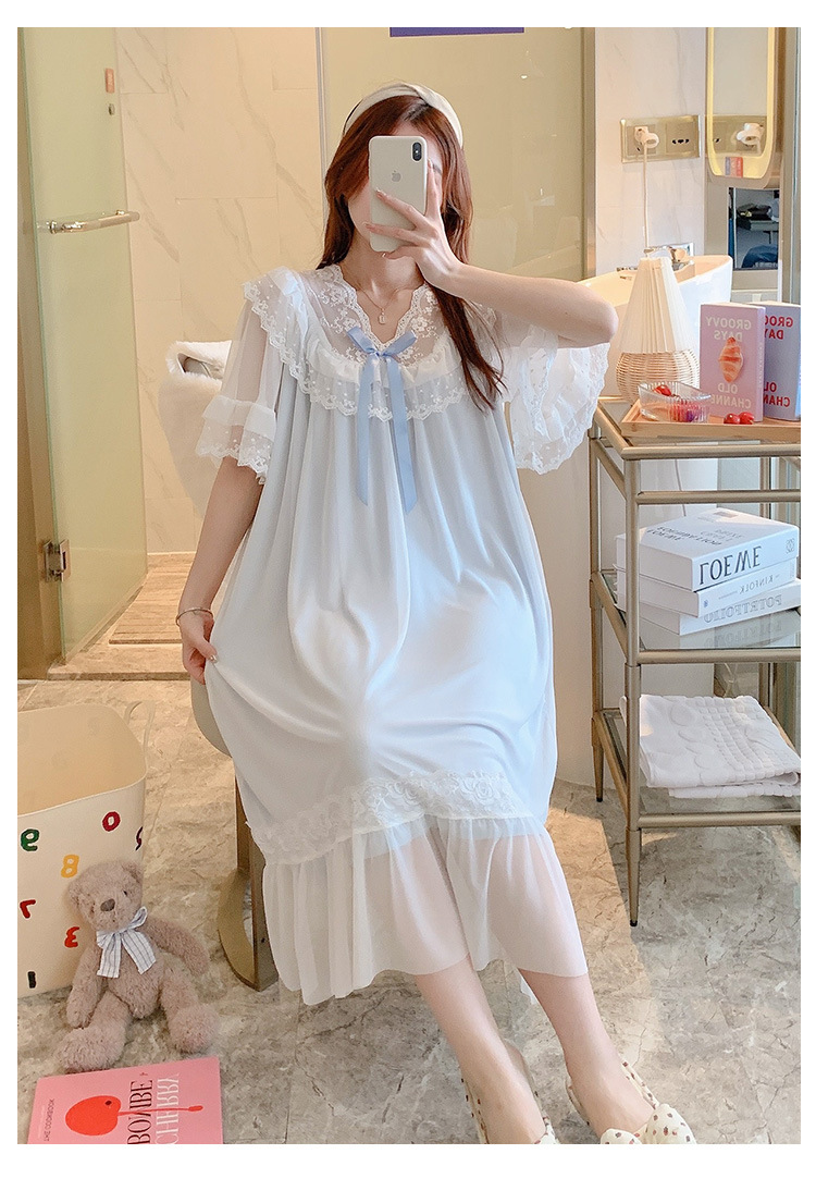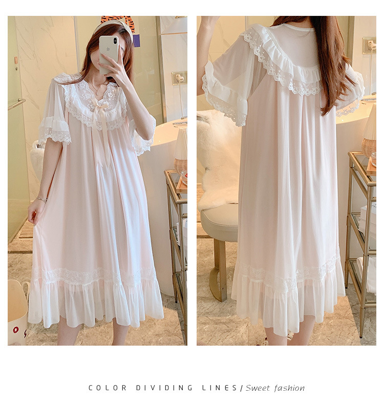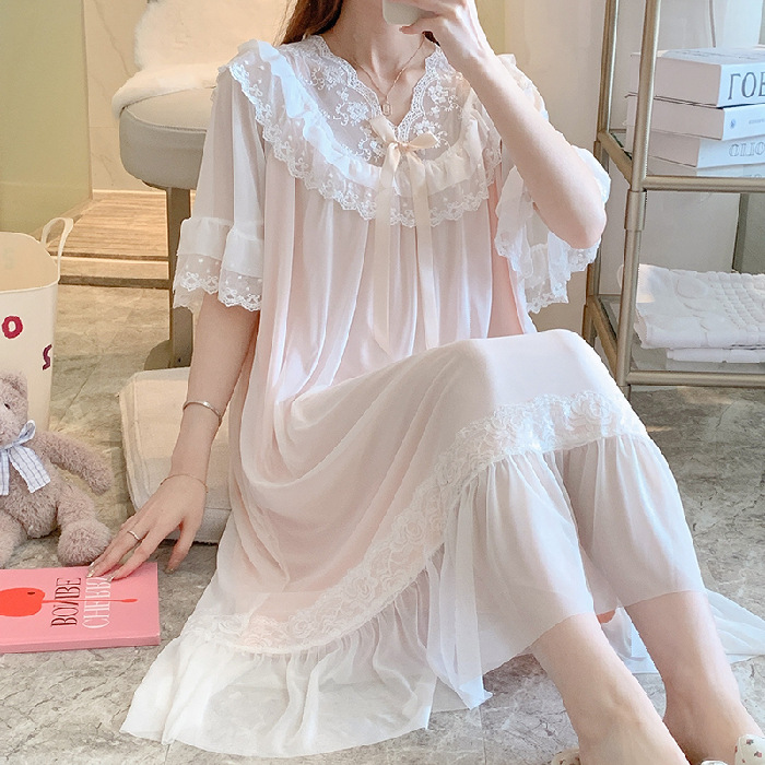 여름 새로운 한국 스타일 얇은 달콤한 귀여운 잠옷 섹시한 메쉬 홈 옷 짧은 소매 잠옷 여성 도매스토어 가기