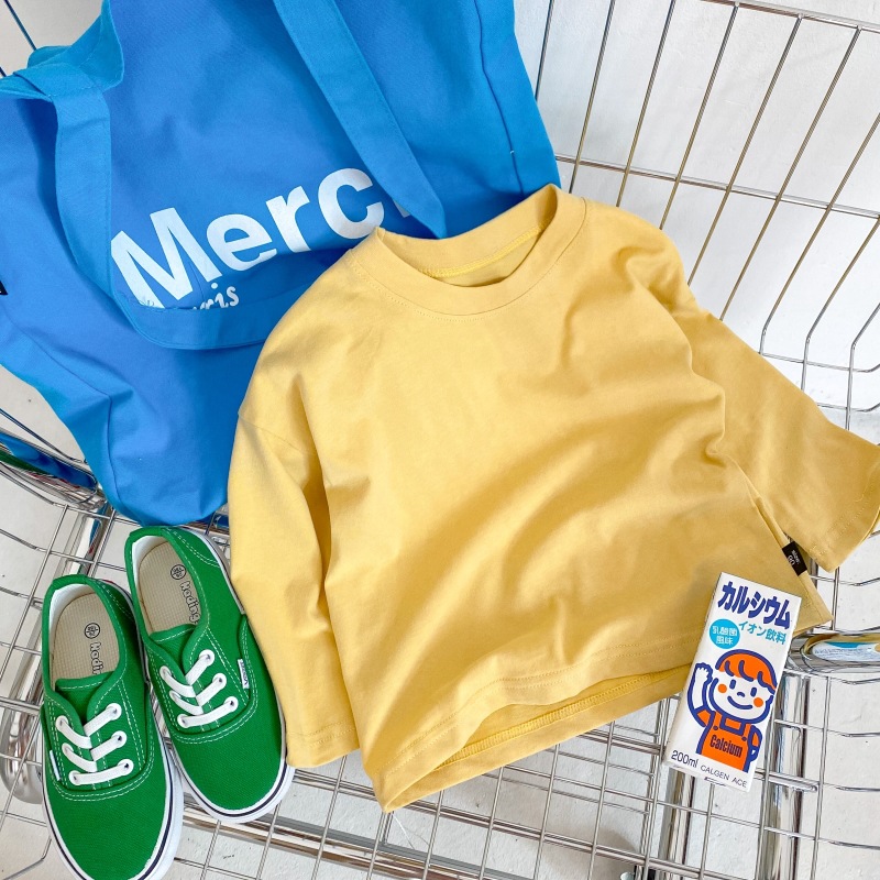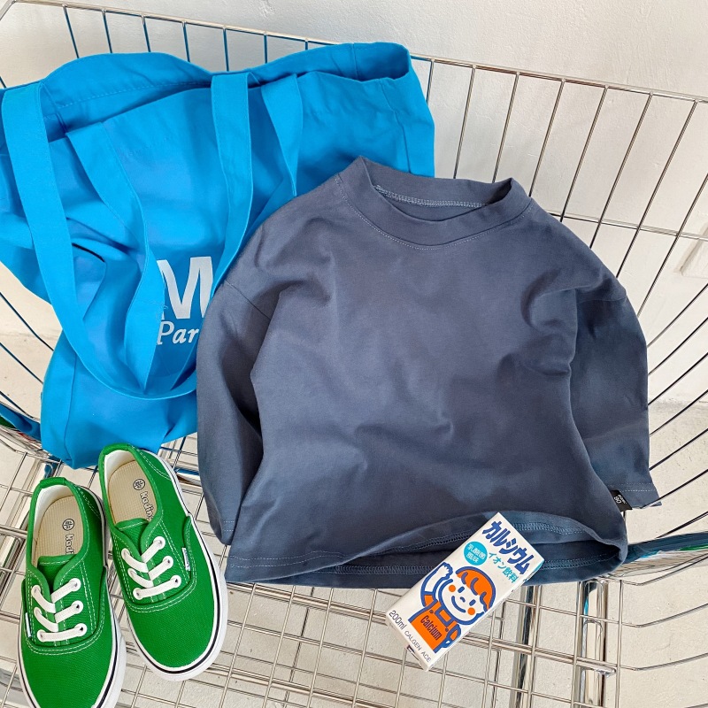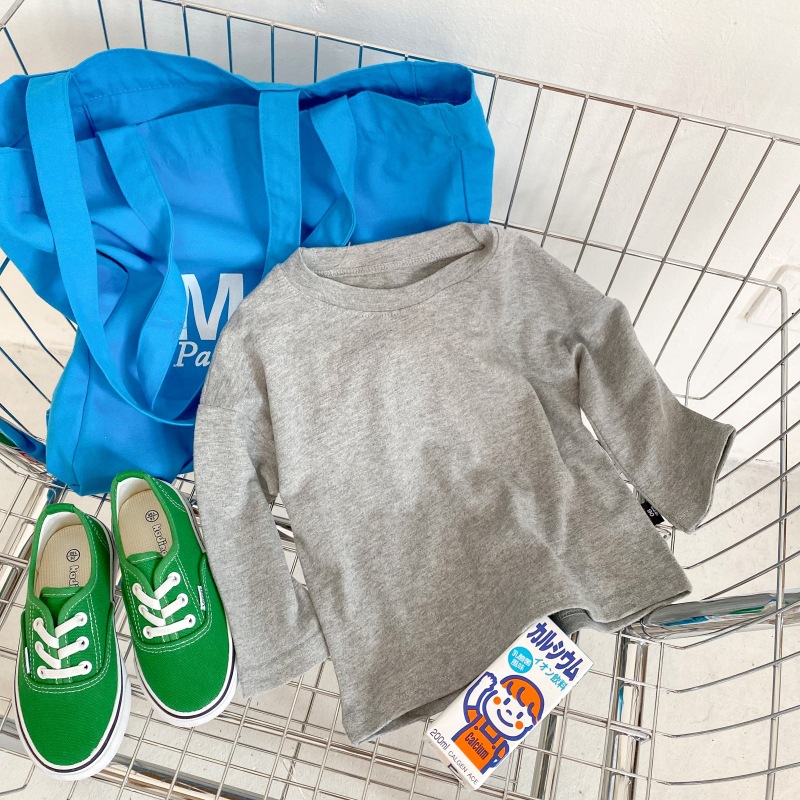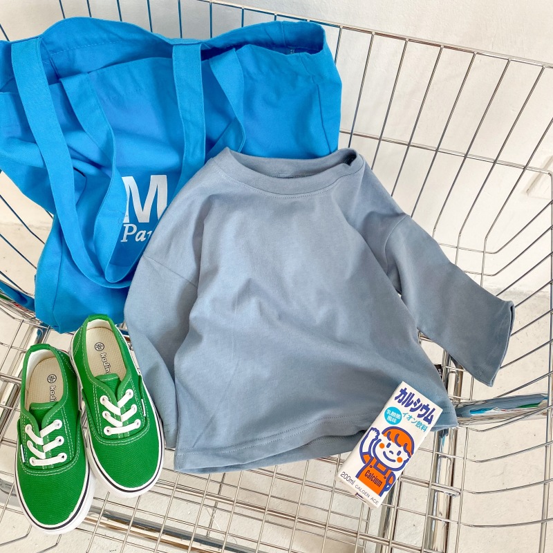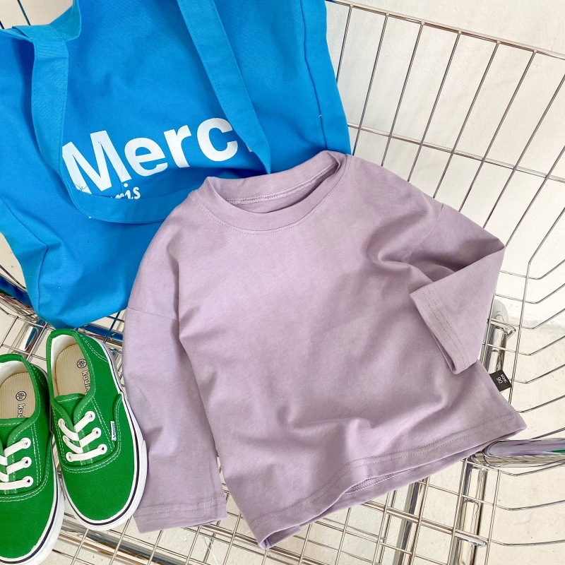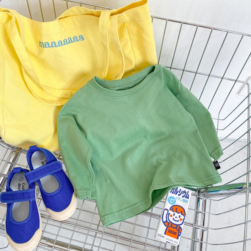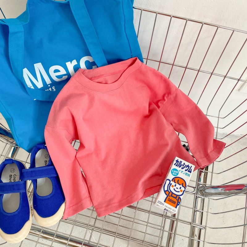봄 신상품 아동용 긴팔 티셔츠 베이스 셔츠 단색 남성 및 여성용 모직 면 아기 라운드 넥 아동복 탑스토어 가기