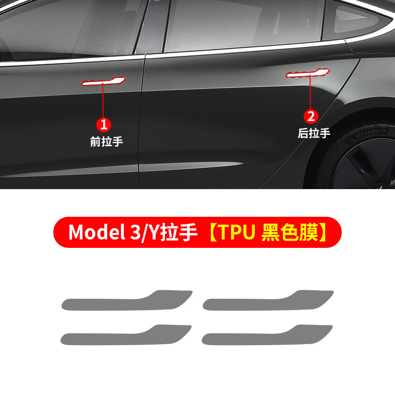 • 모델 3/Y 핸들 “tpu 블랙 필름” 4 장 세트