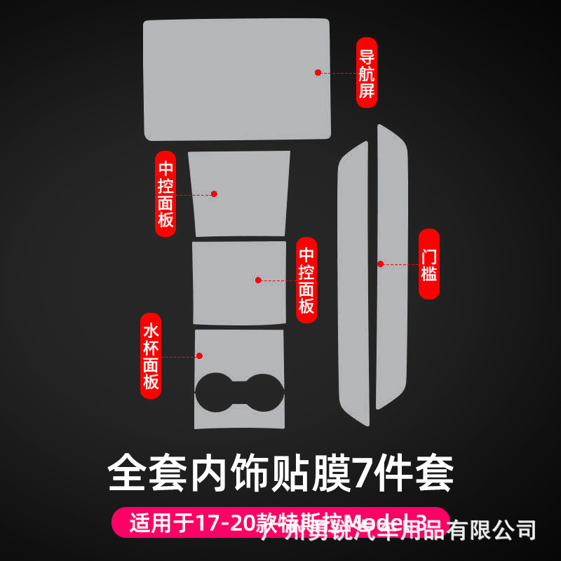 • 17-20 테슬라 모델 3 [인테리어 필름의 tpu 풀세트] 7 피스 세트