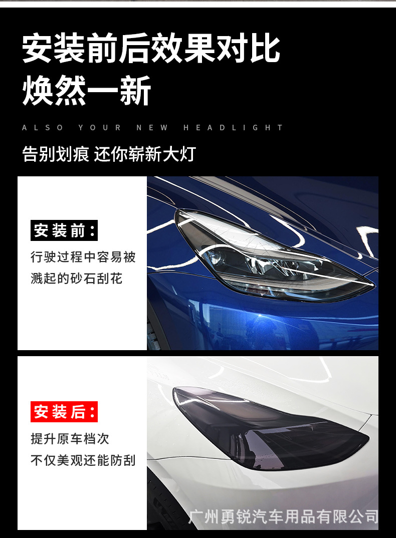 Tesla MODEL3 모델의 새 버전에 적용 가능한 검은 헤드 라이트 내부 및 외부 장식 색상 변경 보호 필름 수정