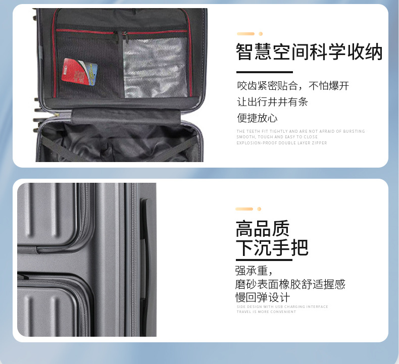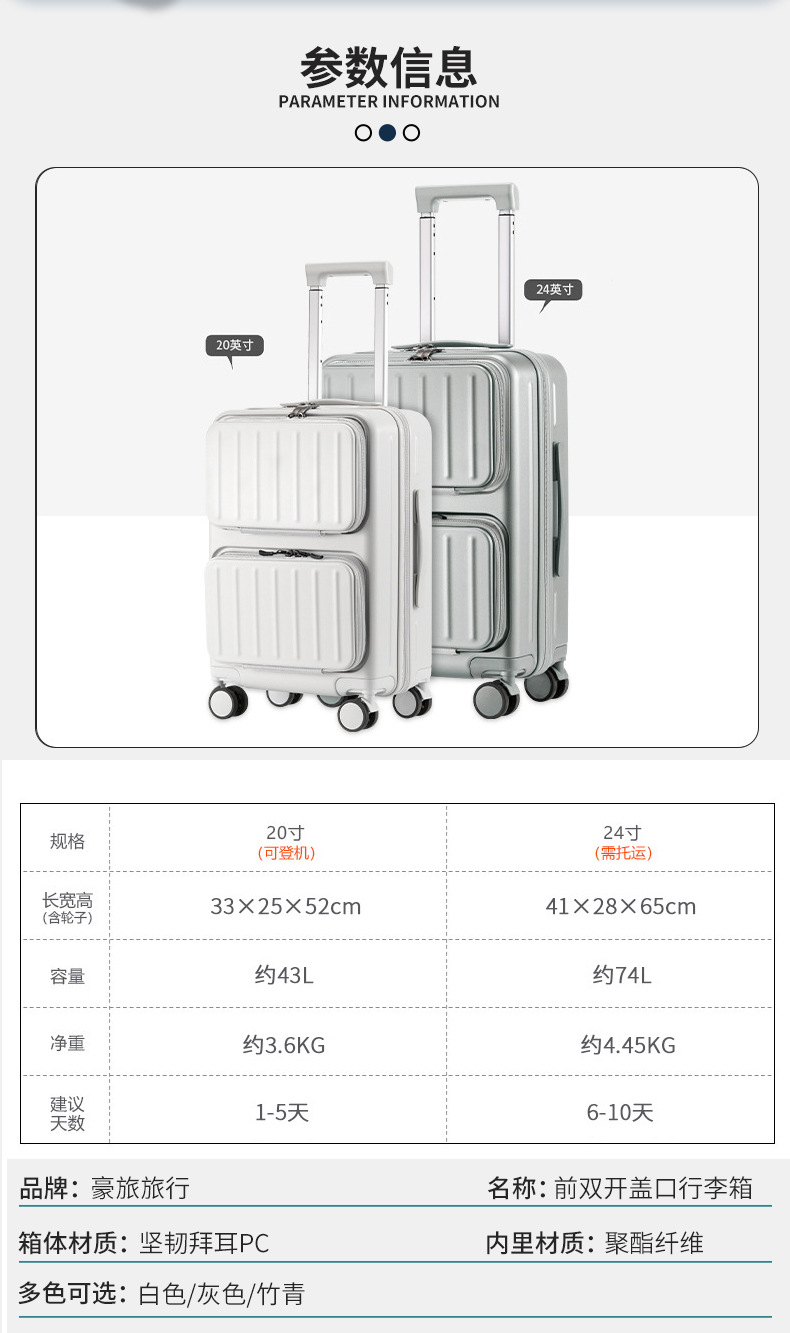 Oeo 다기능 전면 더블 오픈 도어 수하물 여성 20 인치 비즈니스 코드 풀 로드 탑승 경량 여행 수하물스토어 가기