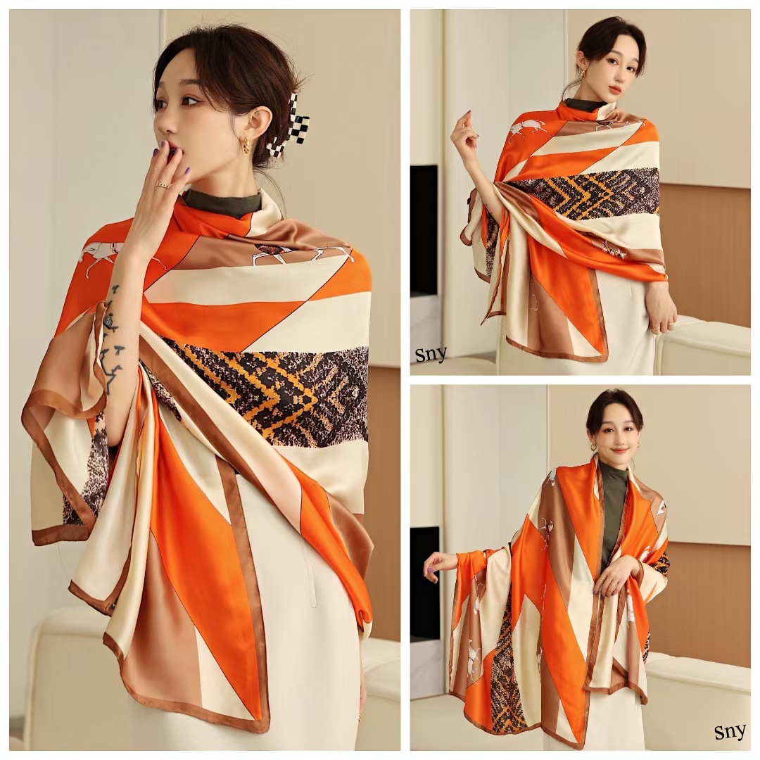 리진 새틴 말 망토 프린트 뽕나무 실크 스카프 여성용 스카프 선 스크린 목도리 여름 비치 타월 큰 긴 스카프스토어 가기