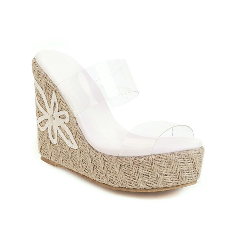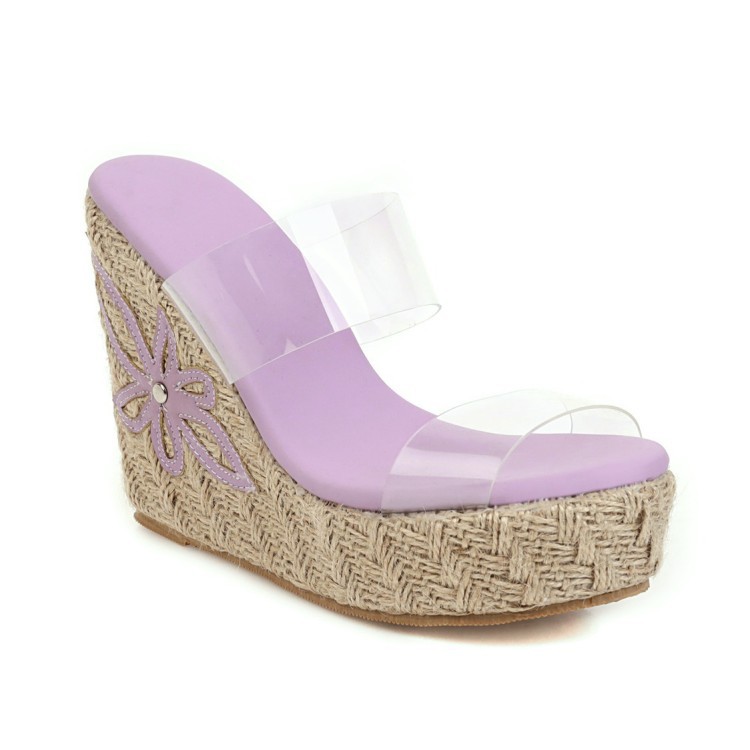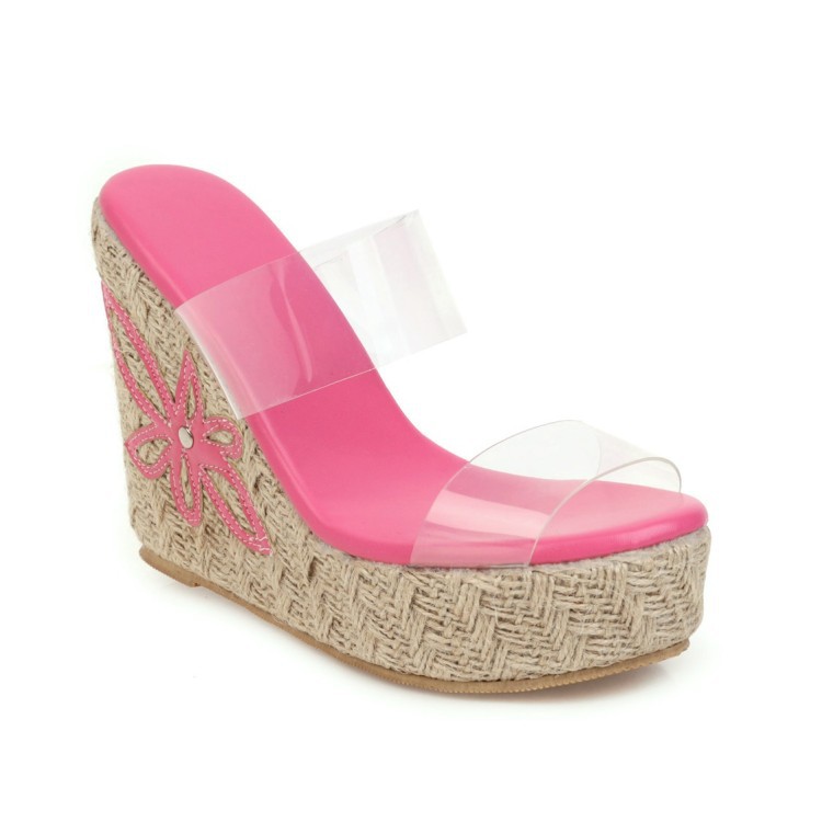 Wish 크로스 국경 대외 무역 플러스 사이즈 여성 신발 여름 새로운 짚 두꺼운 밑창 웨지 샌들 하이힐 슬리퍼 외부 착용
