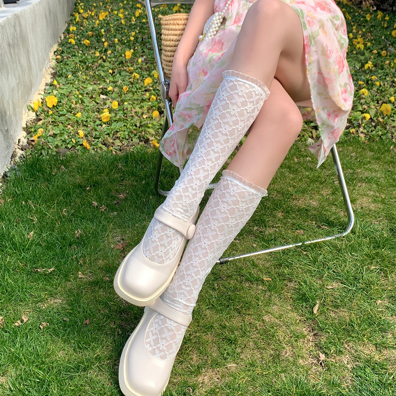 2023 소녀를위한 새로운 프랑스 스타일 레이스 긴 양말 여름 얇은 jk 로리타 고층 흰색 송아지 양말