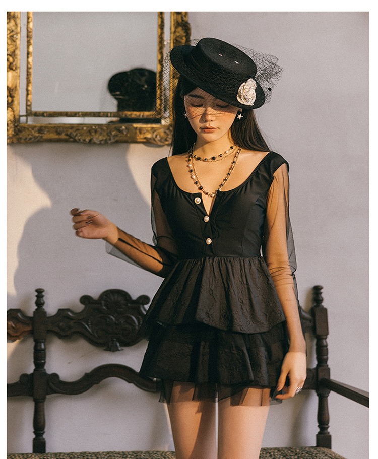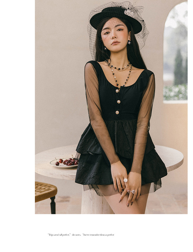 새로운 레이스 섹시 수영복 여성용 배꼽 슬리밍 원피스 플랫 코너 긴팔 보수적 인 작은 가슴 등이없는 온천 수영복스토어 가기