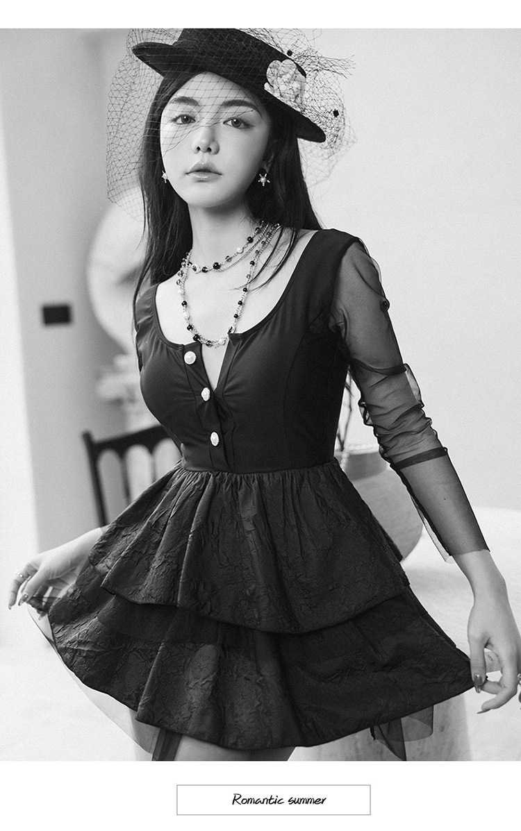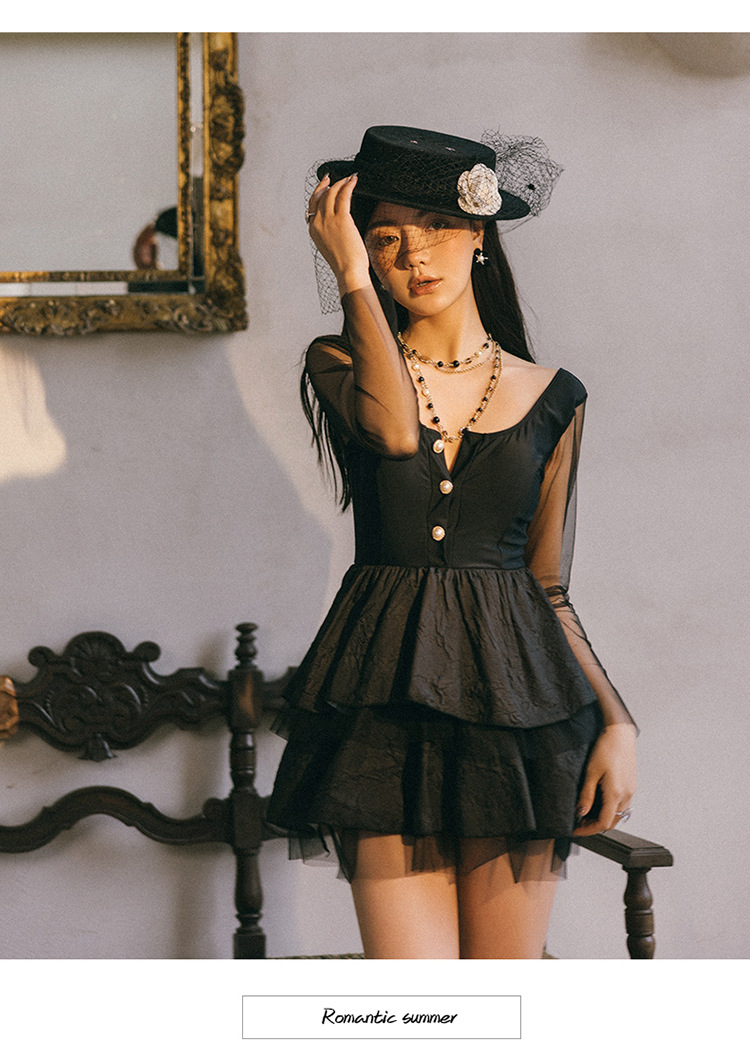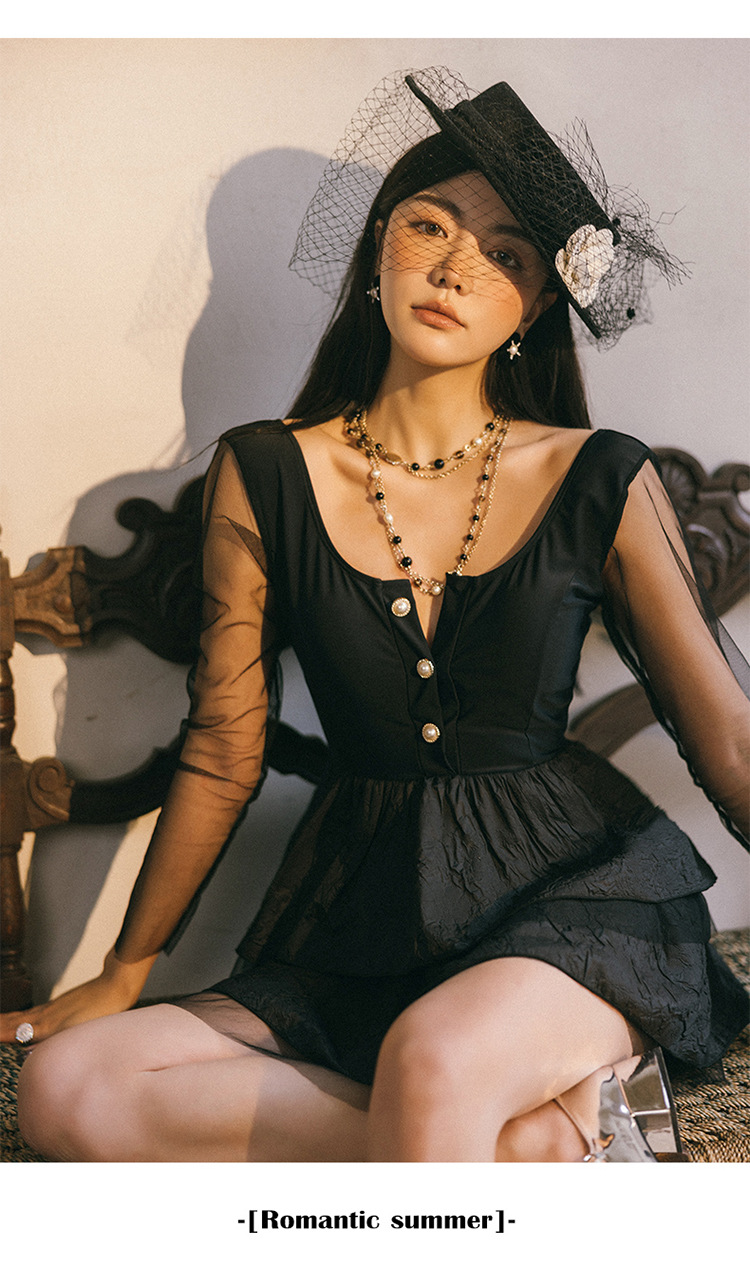 새로운 레이스 섹시 수영복 여성용 배꼽 슬리밍 원피스 플랫 코너 긴팔 보수적 인 작은 가슴 등이없는 온천 수영복