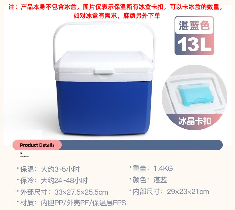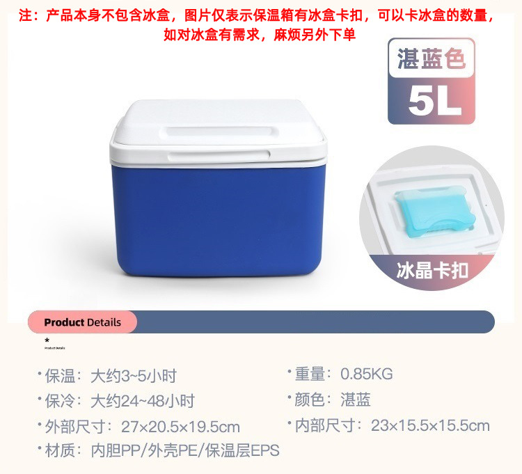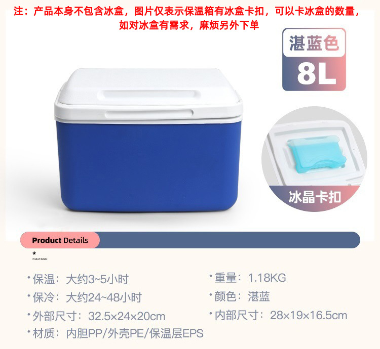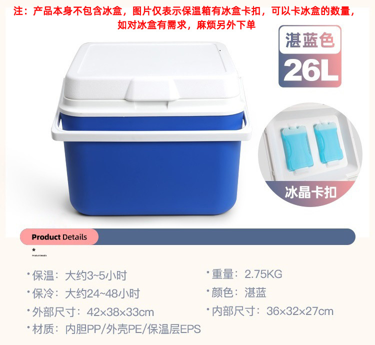注:产品本身不包含冰盒,如有需要麻烦另外加购,(SKU及详情的展示仅表示保温箱盖子可卡冰盒及可卡冰盒数量),冰盒链接有产生额外的运费可联系客服改价