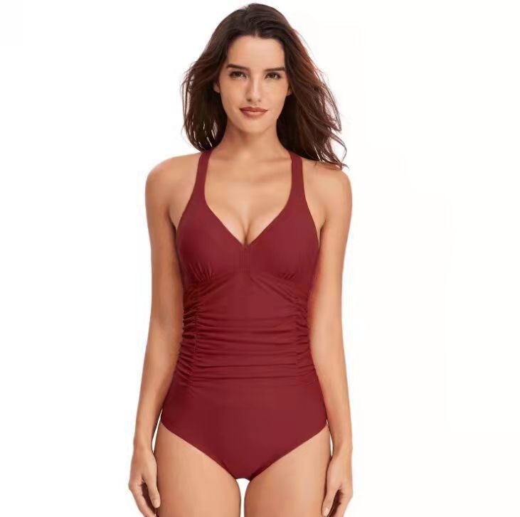 국경 간 유럽과 미국 아마존 폭발 섹시한 결합 된 일반 컬러 멀티 컬러 주름 배꼽 비키니 이제 여성 수영복