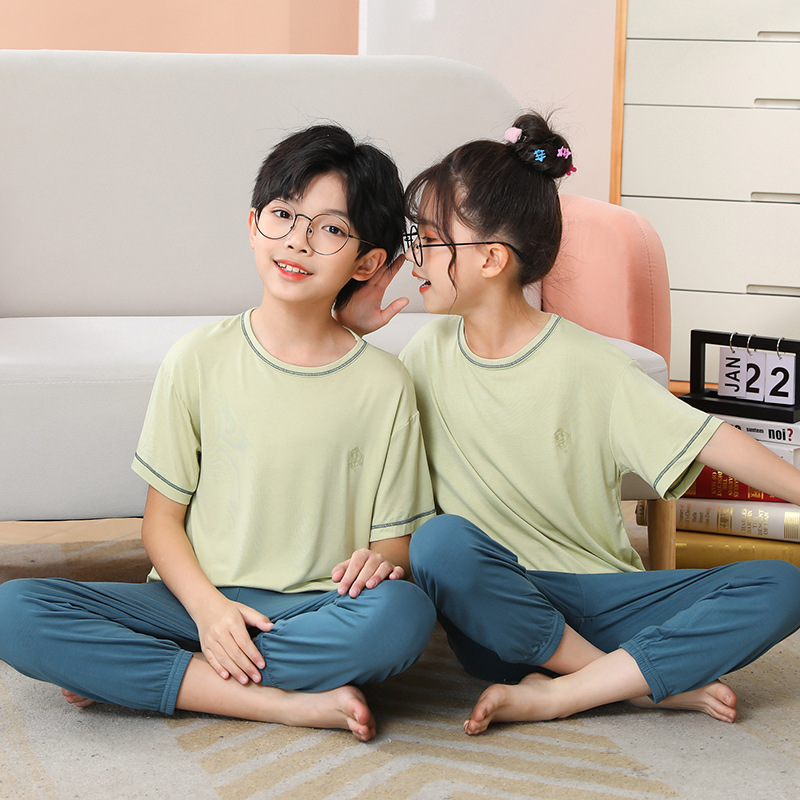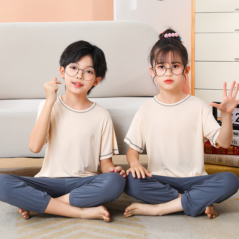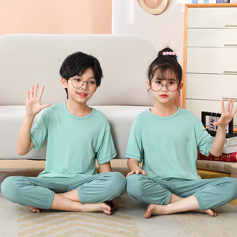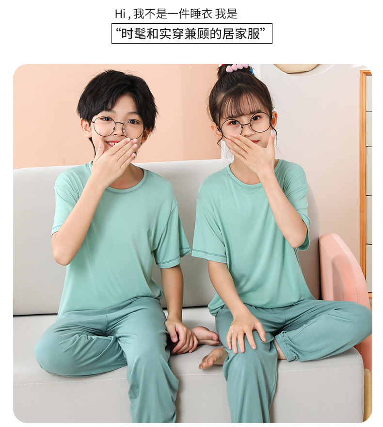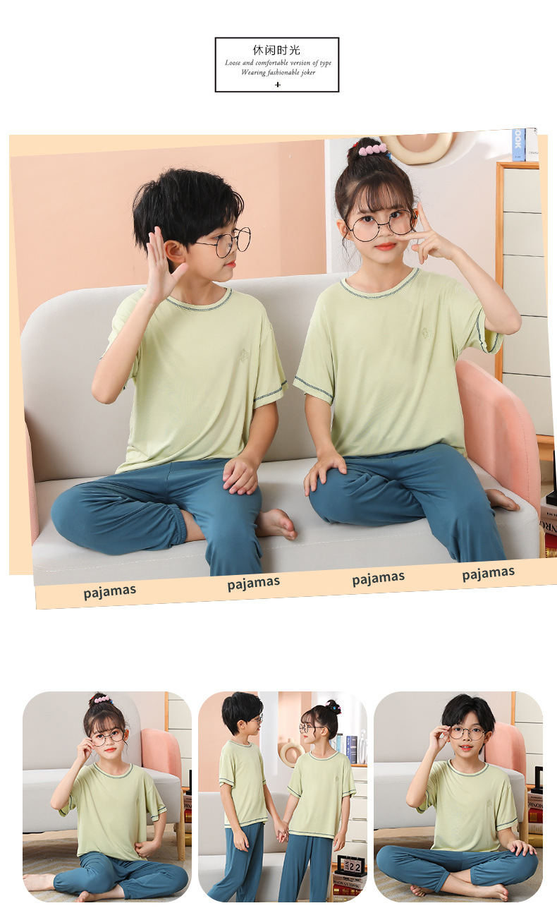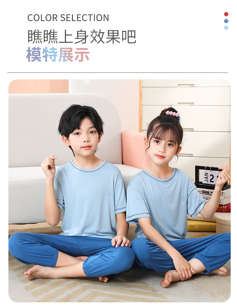 어린이 여름 모달 반팔 세트 소년 소녀 얇고 편안한 가정 의류 어린이 봄과 가을 에어컨 의류스토어 가기