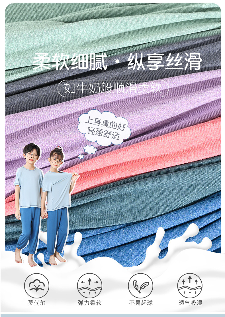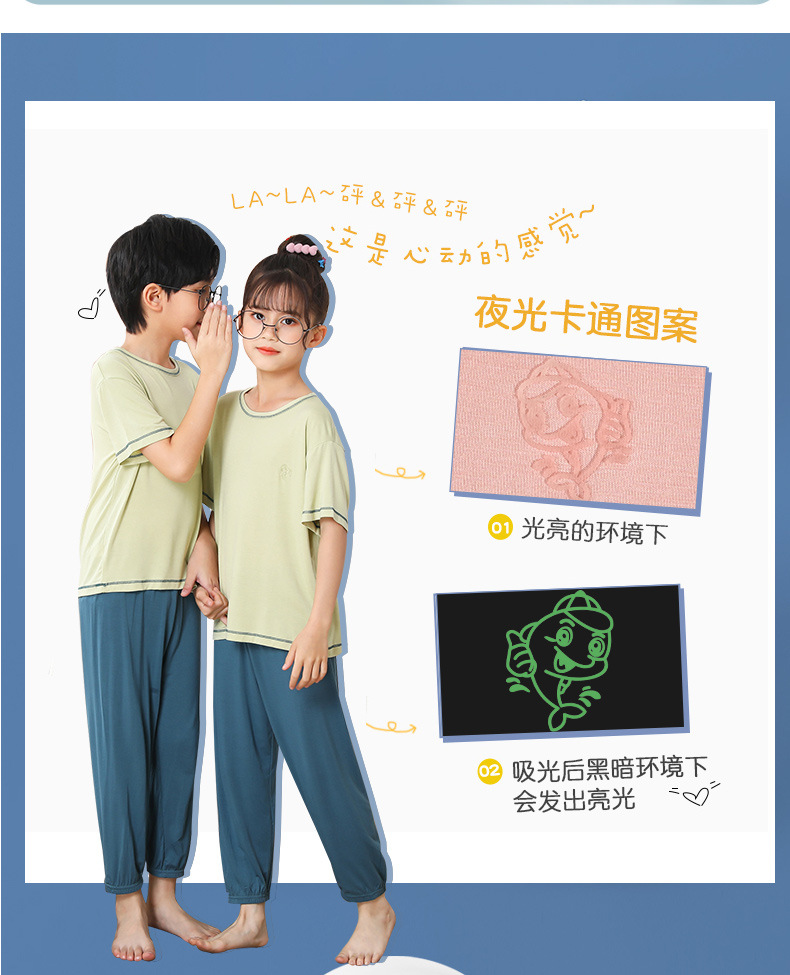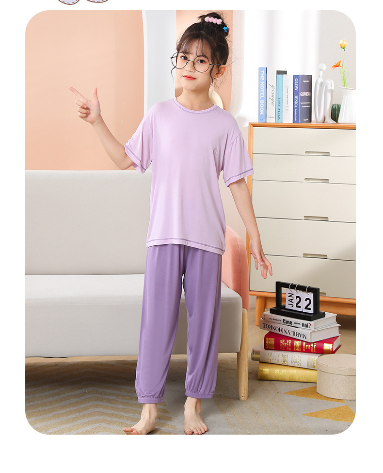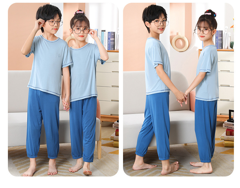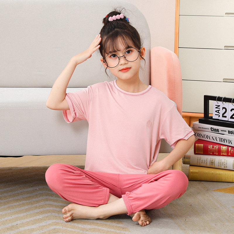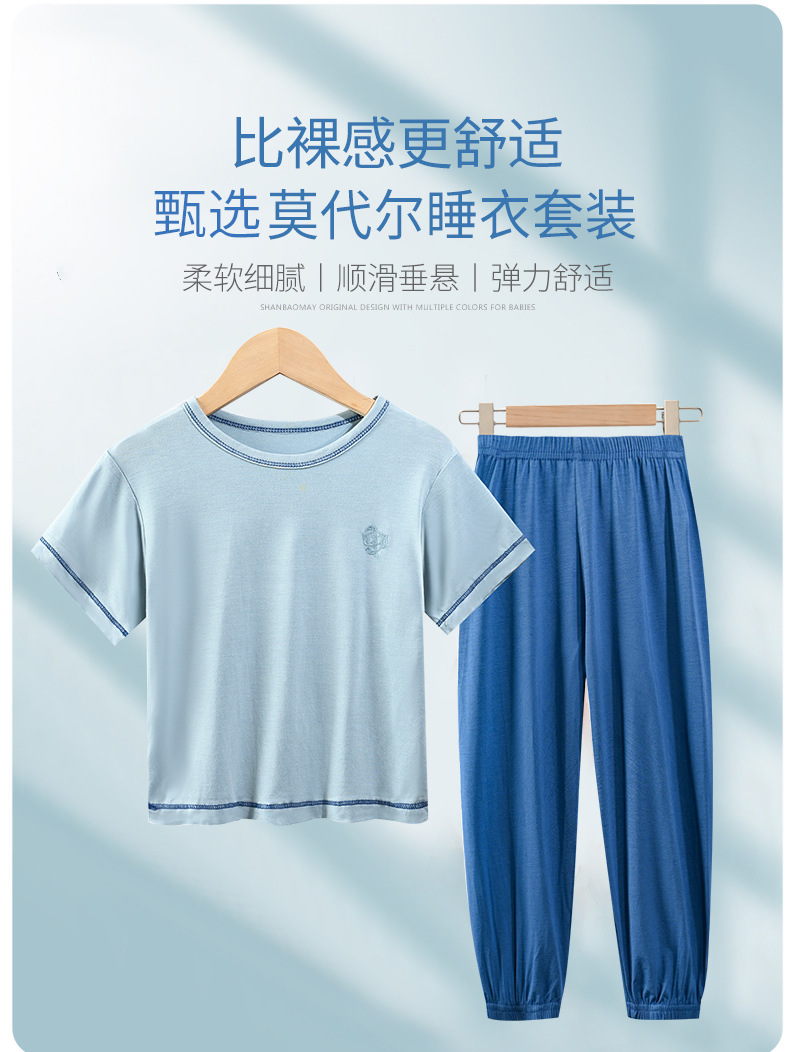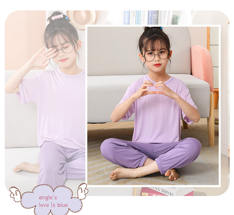 어린이 여름 모달 반팔 세트 소년 소녀 얇고 편안한 가정 의류 어린이 봄과 가을 에어컨 의류스토어 가기