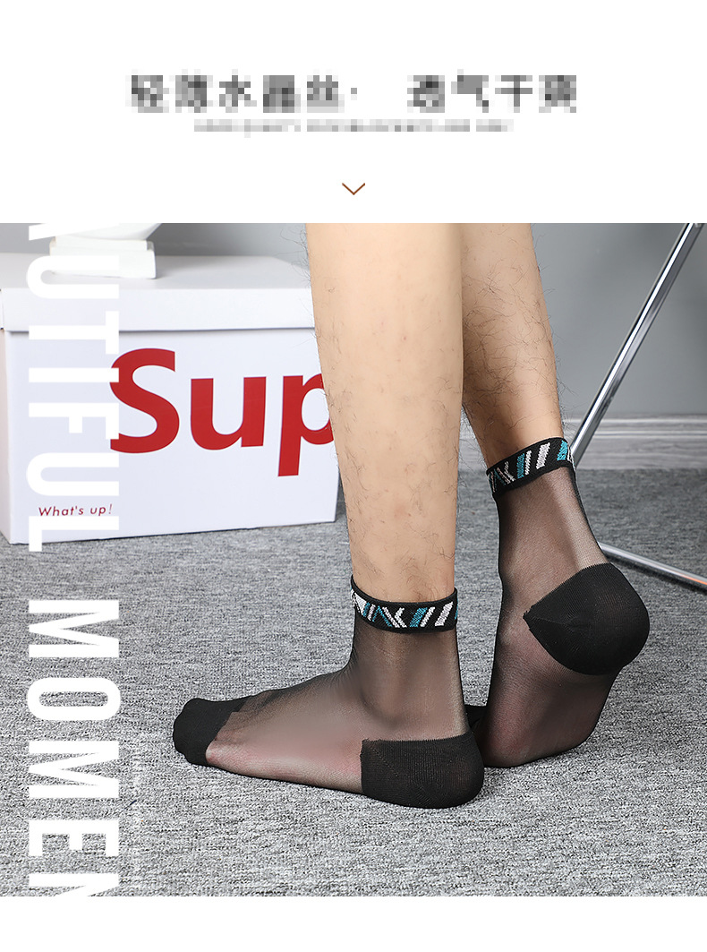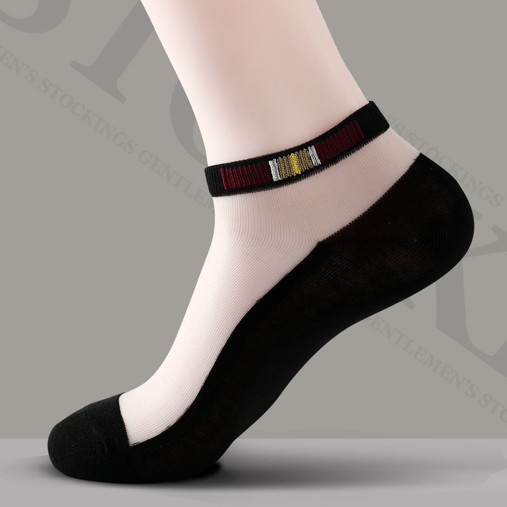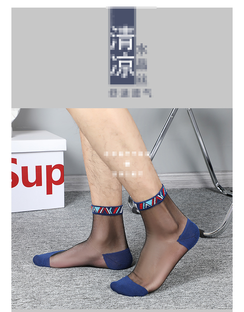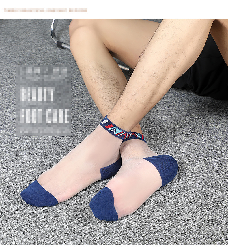 양말 남자 여름 얇은 얼음 실크 유리 실크 미끄럼 방지 후크 실크 크리스탈 스타킹 남자 양말 투명 튜브 스타킹스토어 가기