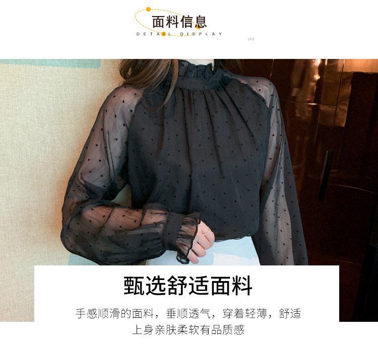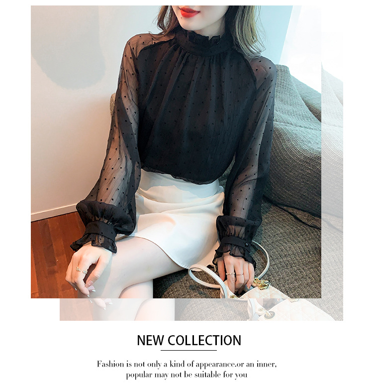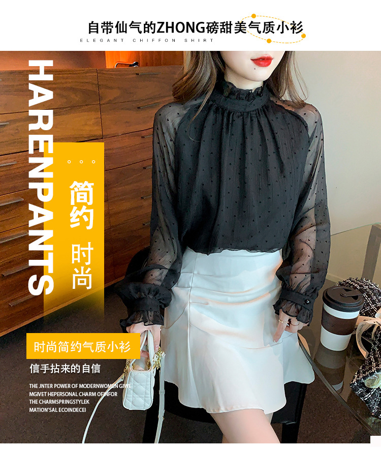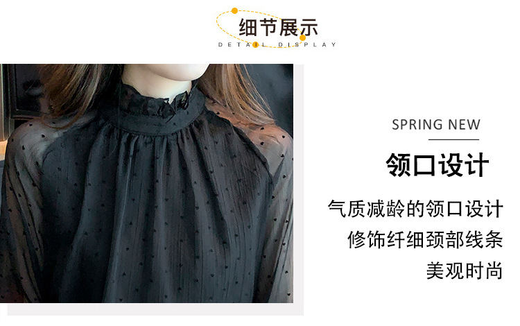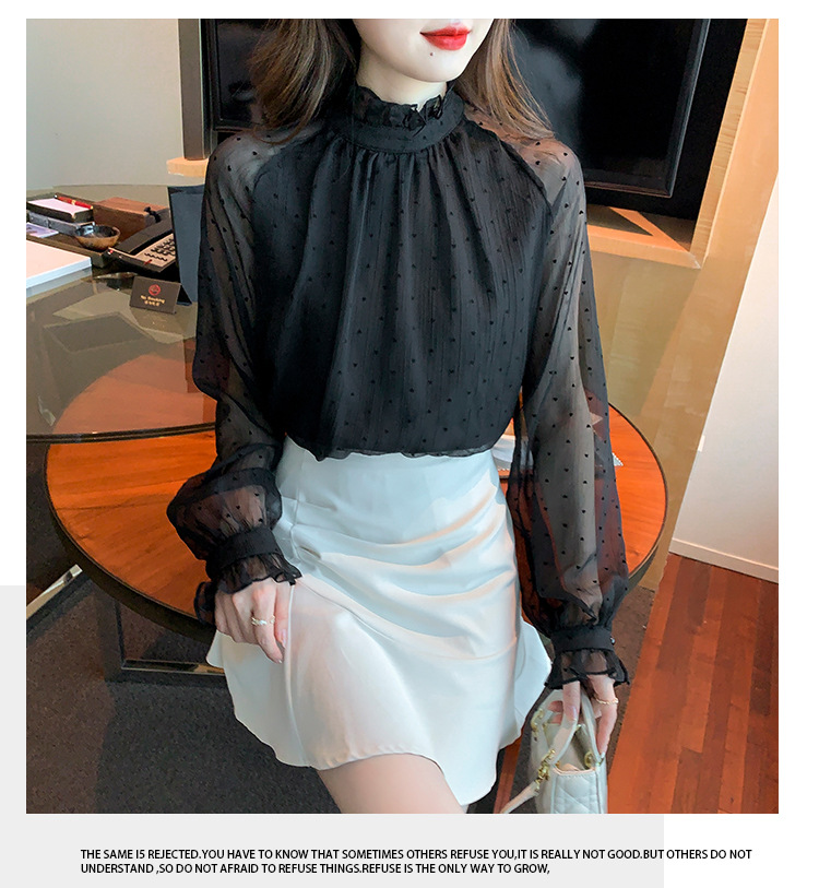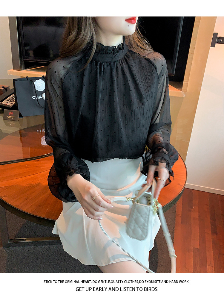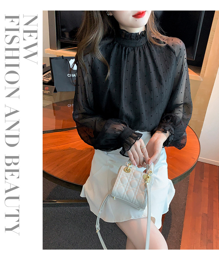 블랙 쉬폰 셔츠 여성용 디자인 감각적인 니치 스타일 스탠드 칼라 메쉬 셔츠 2026년 봄 레트로 홍콩 스타일 탑스토어 가기
