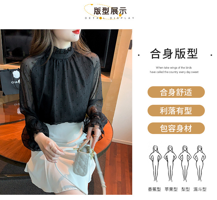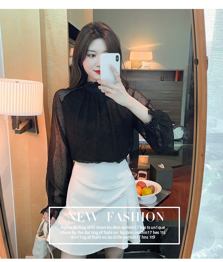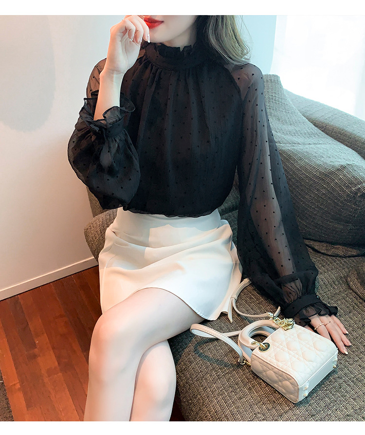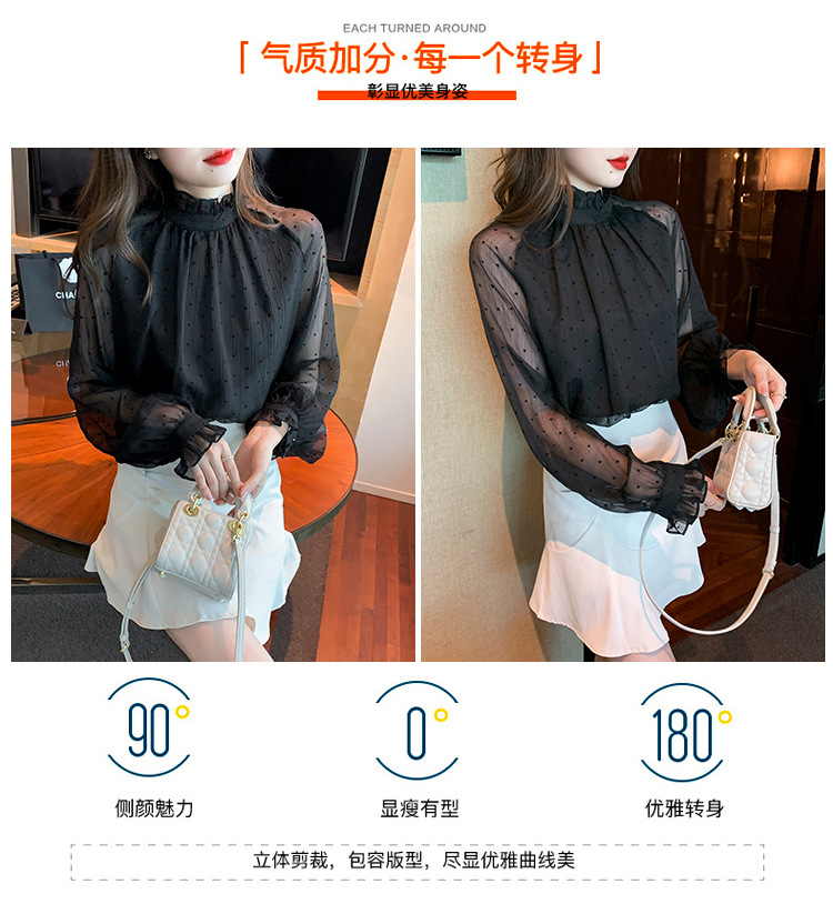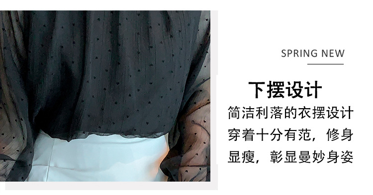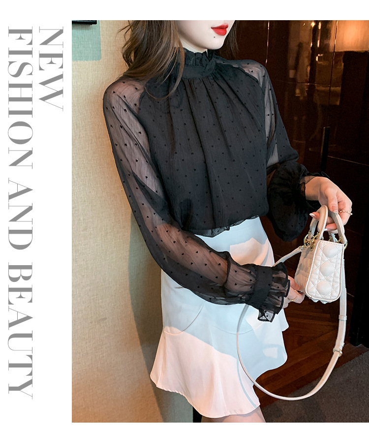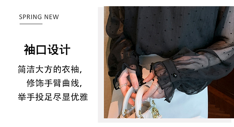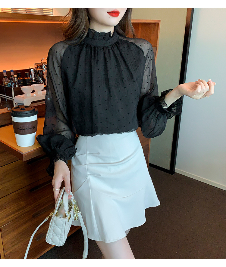 블랙 쉬폰 셔츠 여성용 디자인 감각적인 니치 스타일 스탠드 칼라 메쉬 셔츠 2026년 봄 레트로 홍콩 스타일 탑스토어 가기