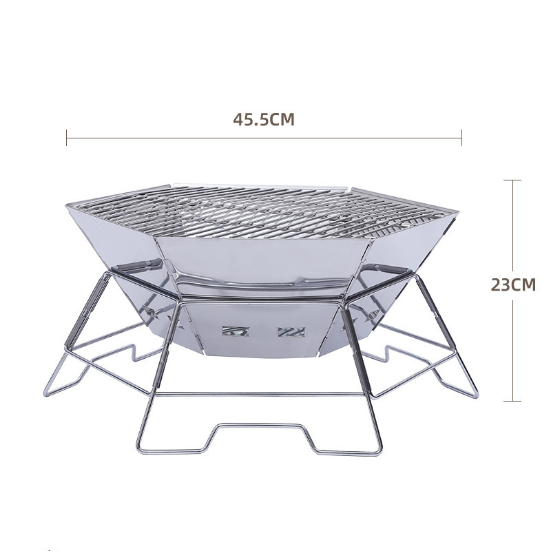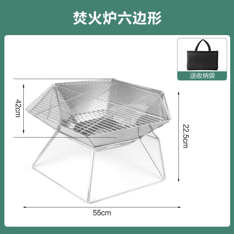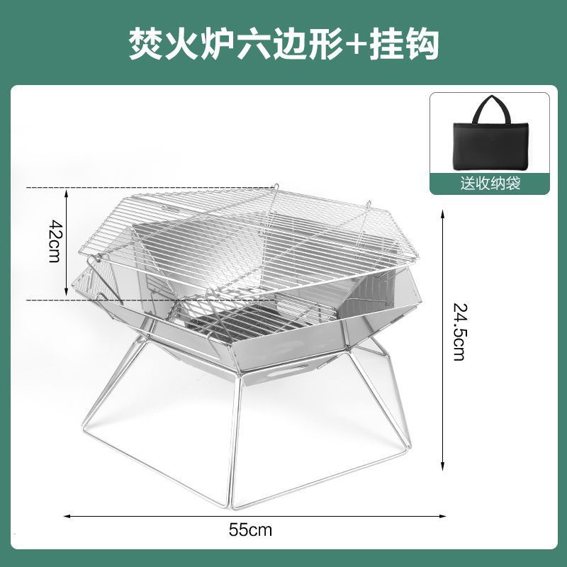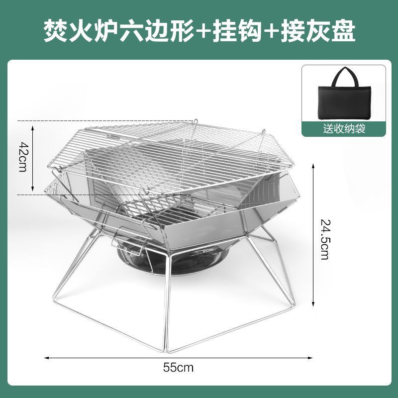 야외 캠핑 스테인레스 스틸 바베큐 나무 스토브 육각 굽기 테이블 접이식 휴대용 바베큐 그릴 바베큐 그릴 도매스토어 가기