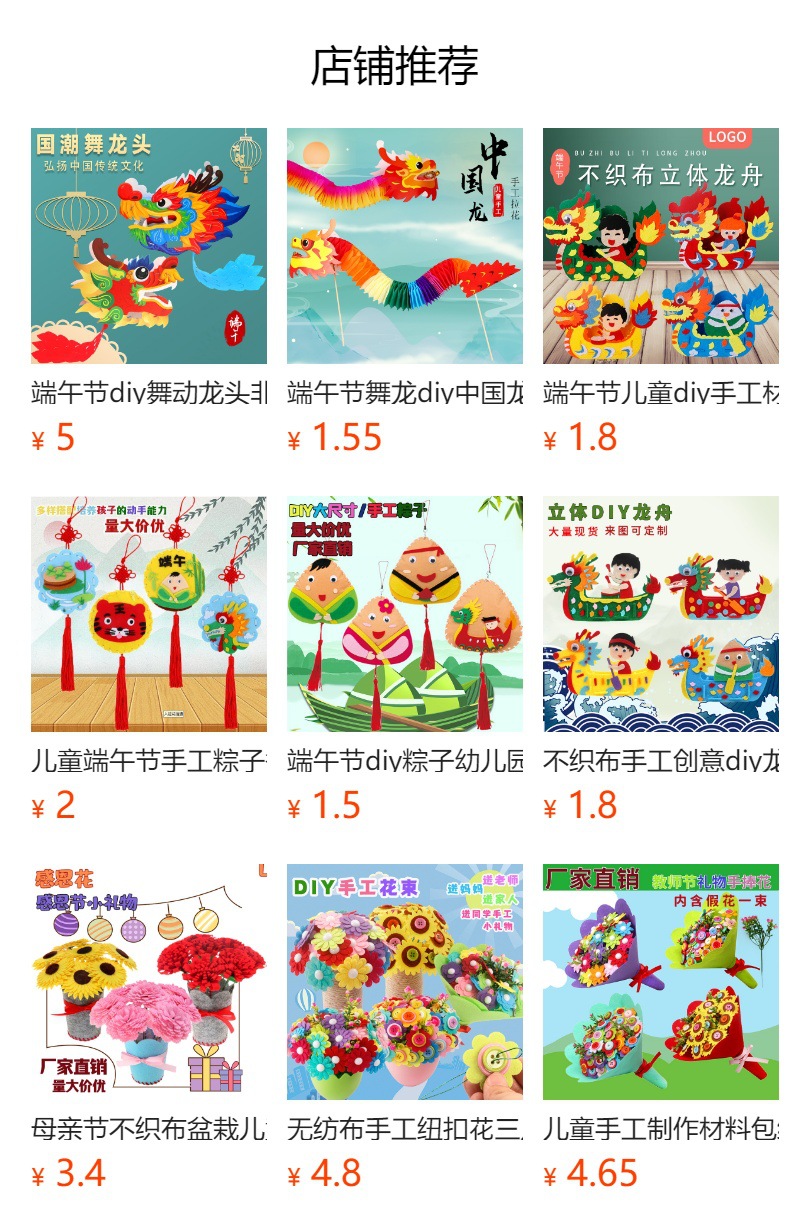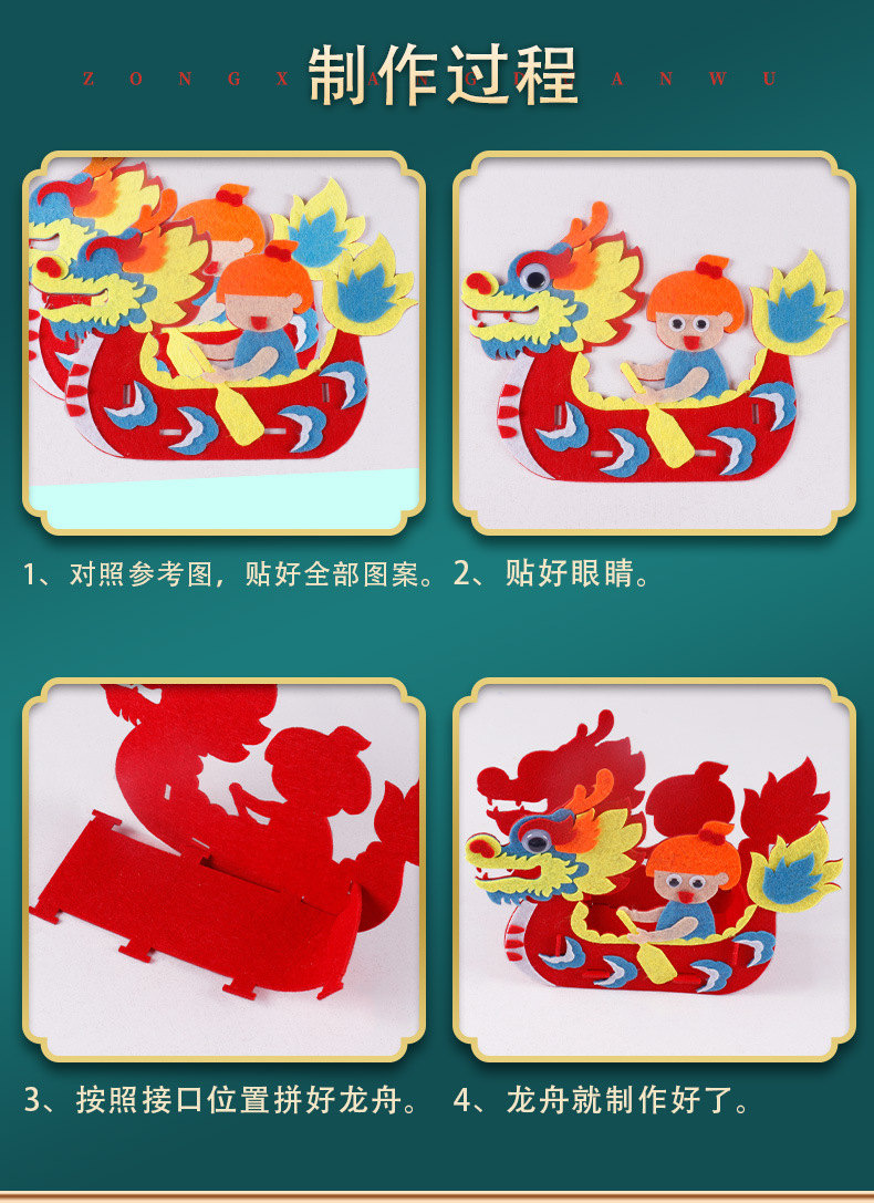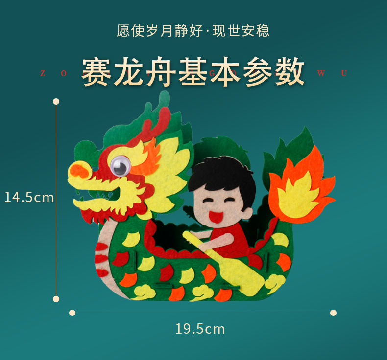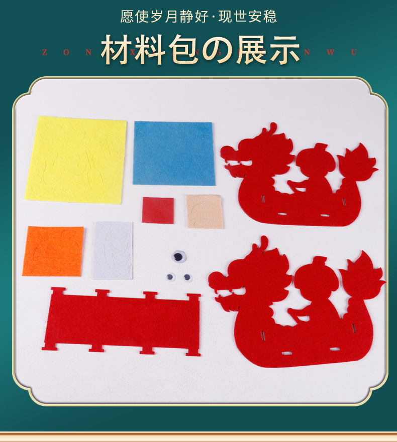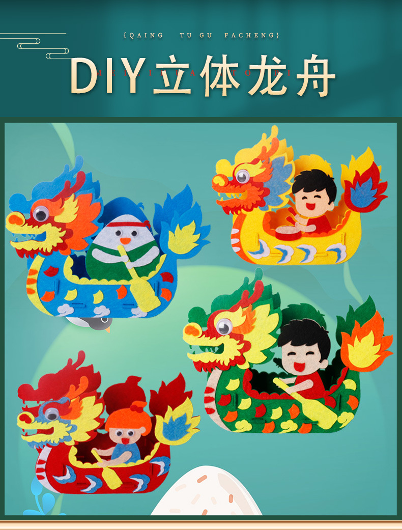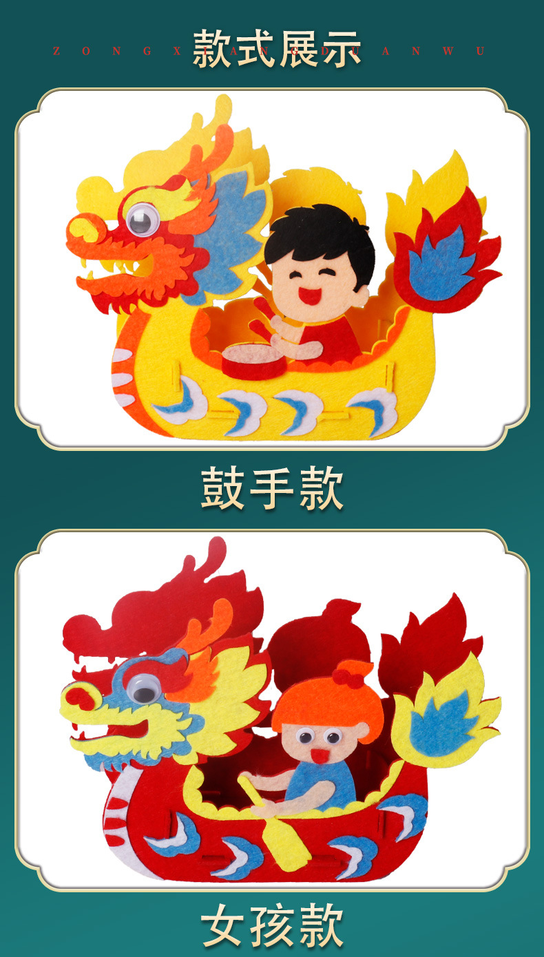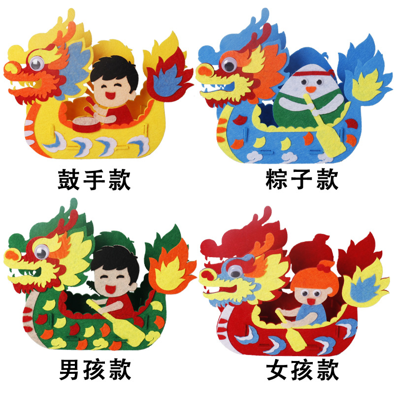 드래곤 보트 페스티벌 어린이 DIY 수제 재료 가방 교수형 장식품 부직포 드래곤 보트 부직포 유치원 크리에이티브 페이스트스토어 가기