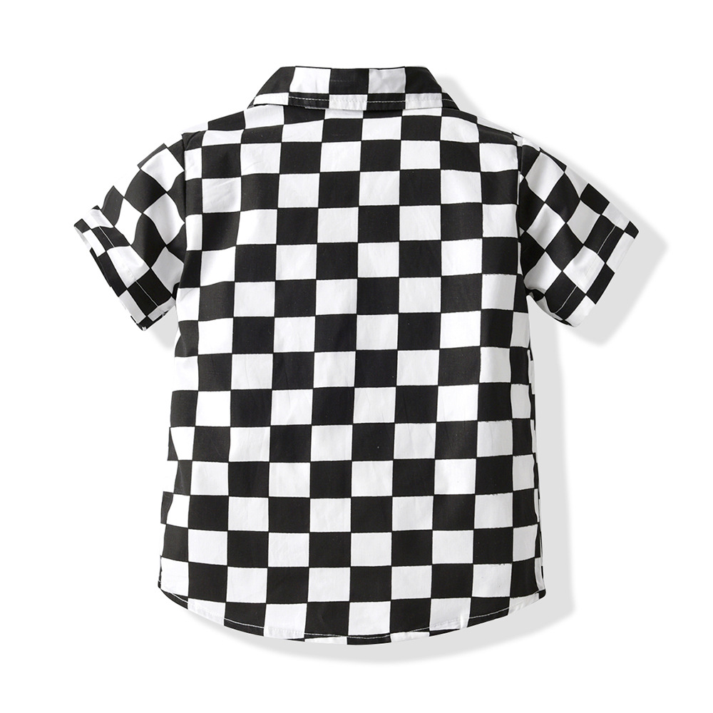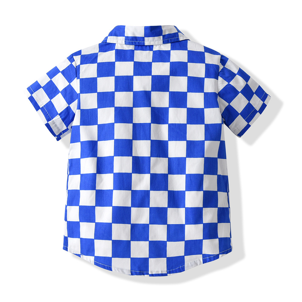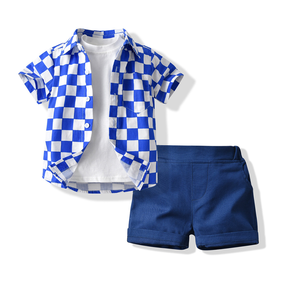 아동 의류 도매 봄과 여름 아동 의류 세대의 한국어 버전 소년 체스 판 격자 무늬 셔츠 티셔츠 반팔 세트
