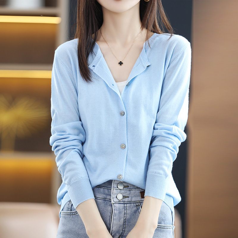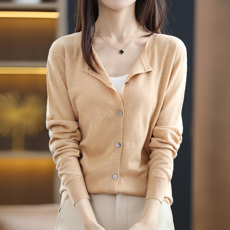 2022 새로운 럭셔리 이른 봄 울 코트 여성용 크루넥 탑 캐시미어 스웨터 경량 에어 니트 가디건
