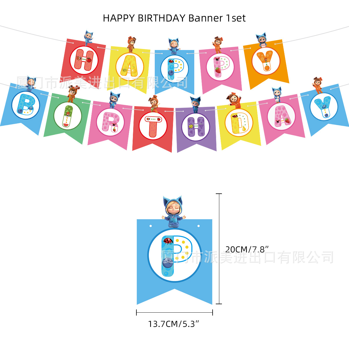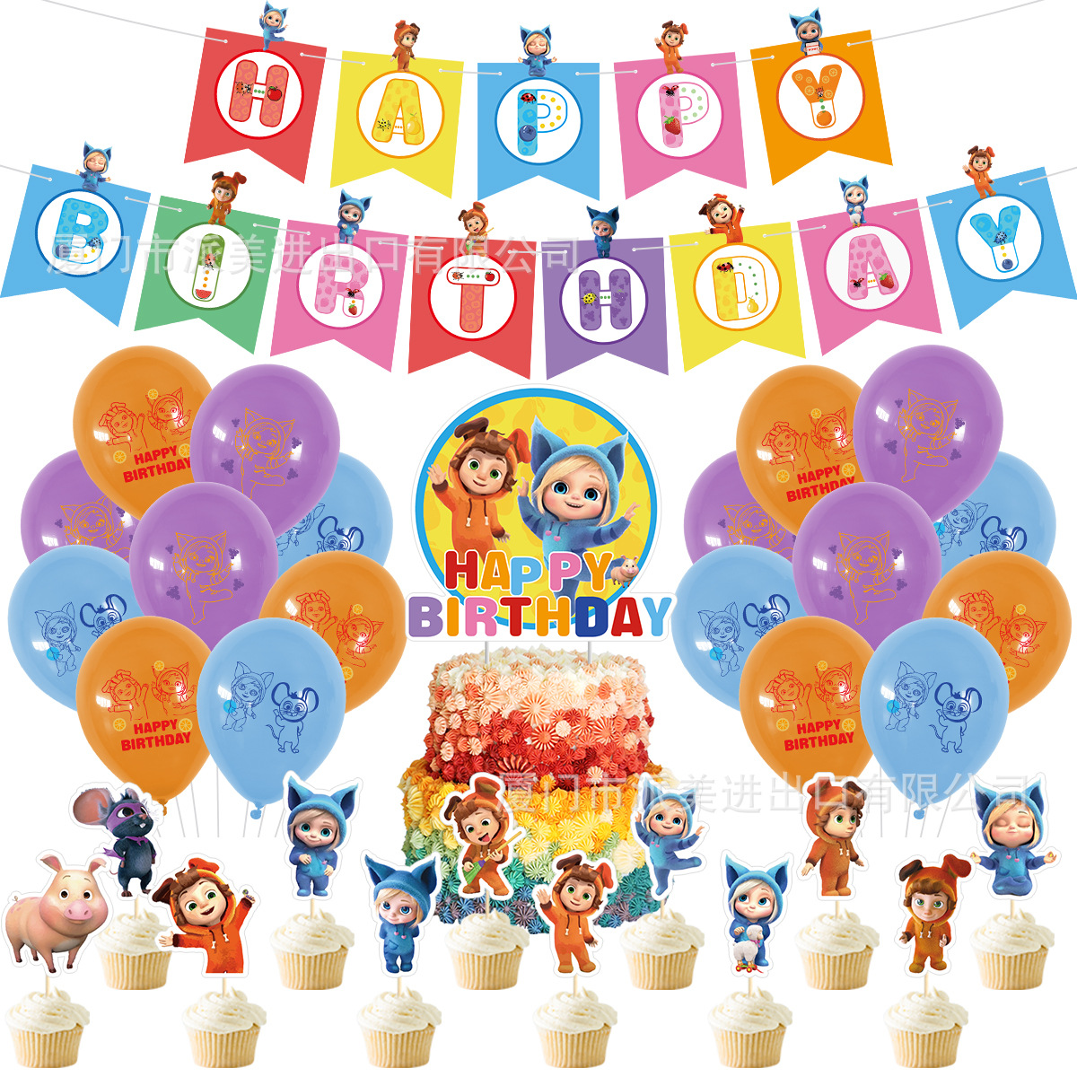 1条生日快乐拉旗+18个乳胶气球+1个蛋糕插旗+12个蛋糕插旗