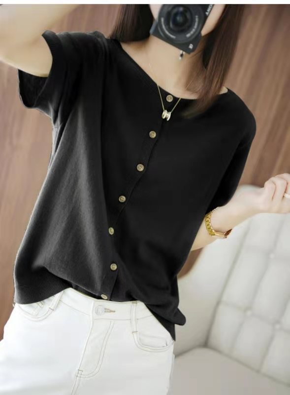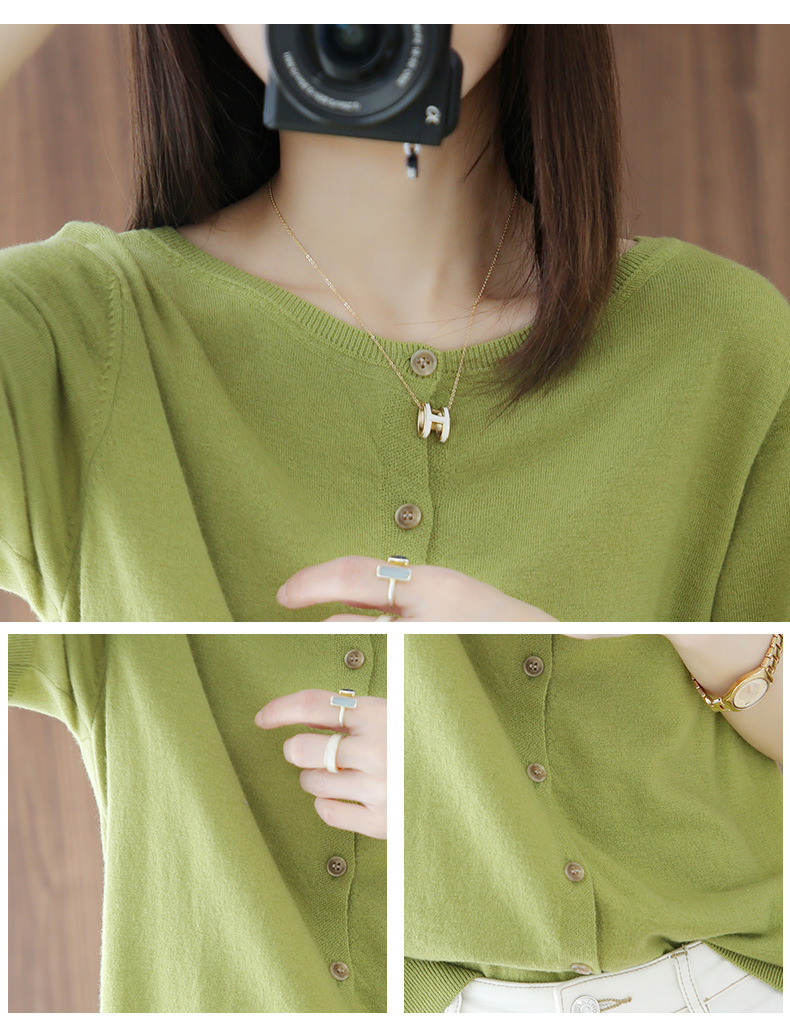 여름 새로운 얇은 얼음 실크 반팔 니트 카디건 여성용 양면 에어컨 셔츠 스커트 탑 짧은 느슨한 코트스토어 가기