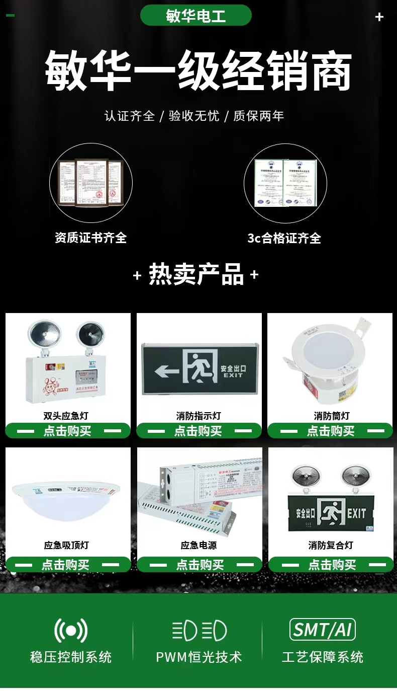 Minhua 화재 비상 조명 안전 출구 표시 대피 표시등 표시등 비상 조명 투인원