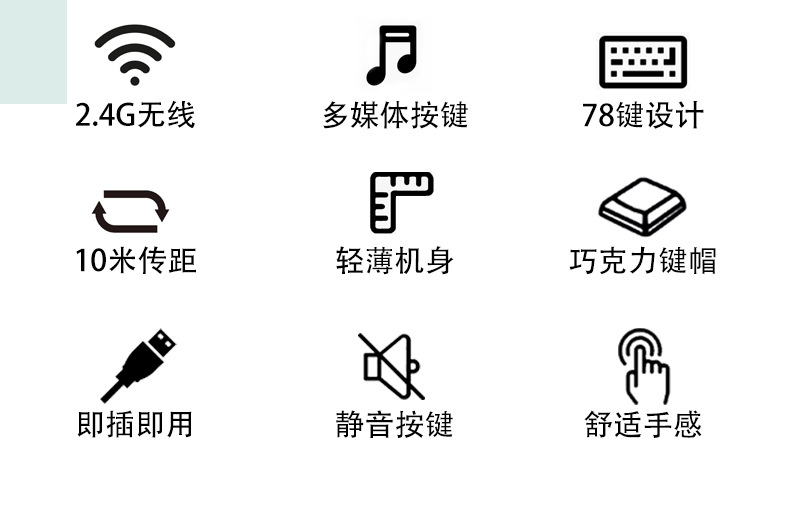 2.4G无线键盘鼠标套装,现货供应标准英文,俄文,阿拉伯文,法文等
