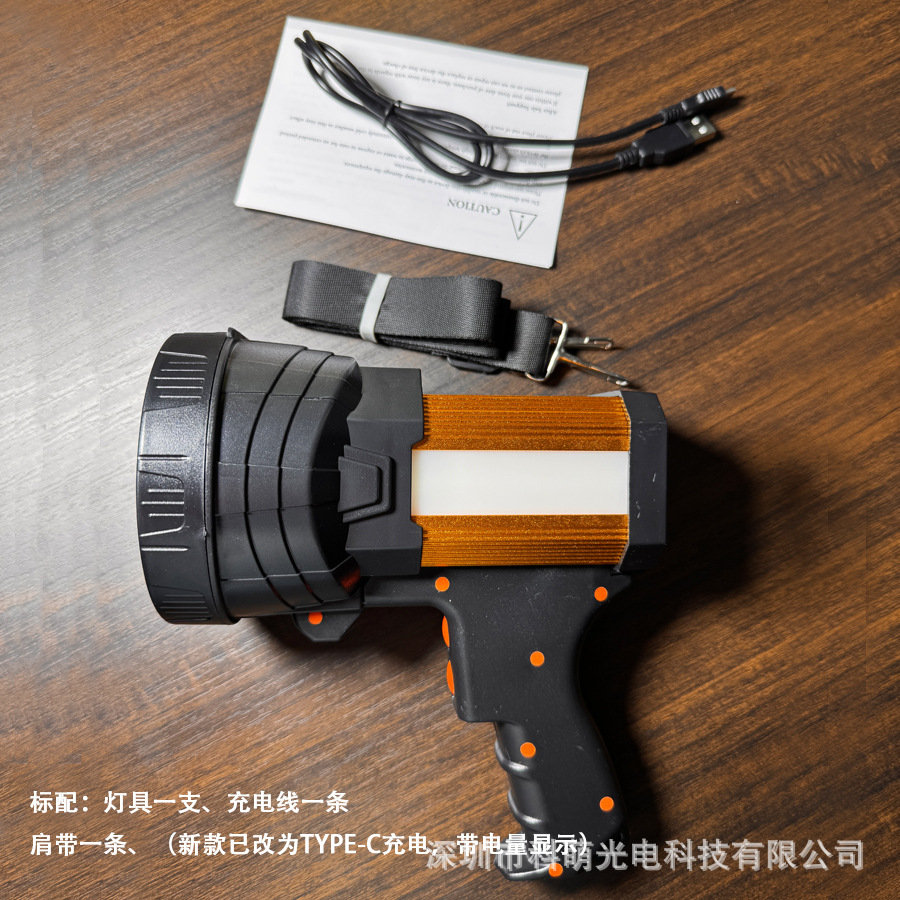 标配:充电线+肩带+主体灯具+中性英文说明书+中性彩色英文包装盒