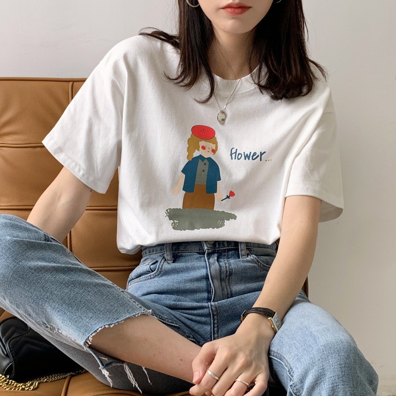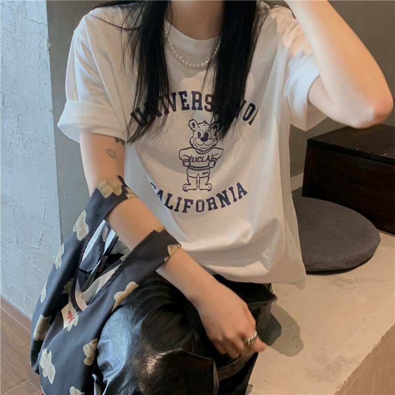 순수 코튼 반팔 티셔츠 여성 느슨한 한국 스타일 하라주쿠 스타일 새 편지 인쇄 학생 코튼 티셔츠 ins 여성 패션 트렌드스토어 가기