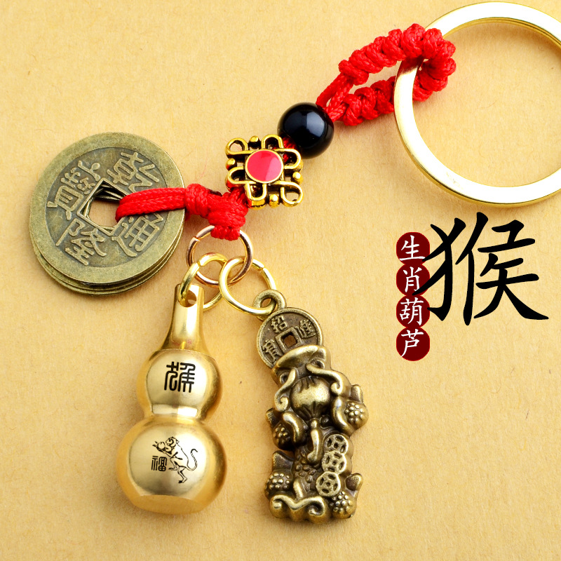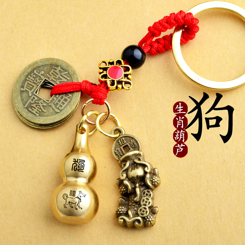 공장 붉은 밧줄 다섯 황제 돈 합금 구리 동전 Pixiu 키 체인 중공 조롱박 펜던트 이우 작은 항목 도매