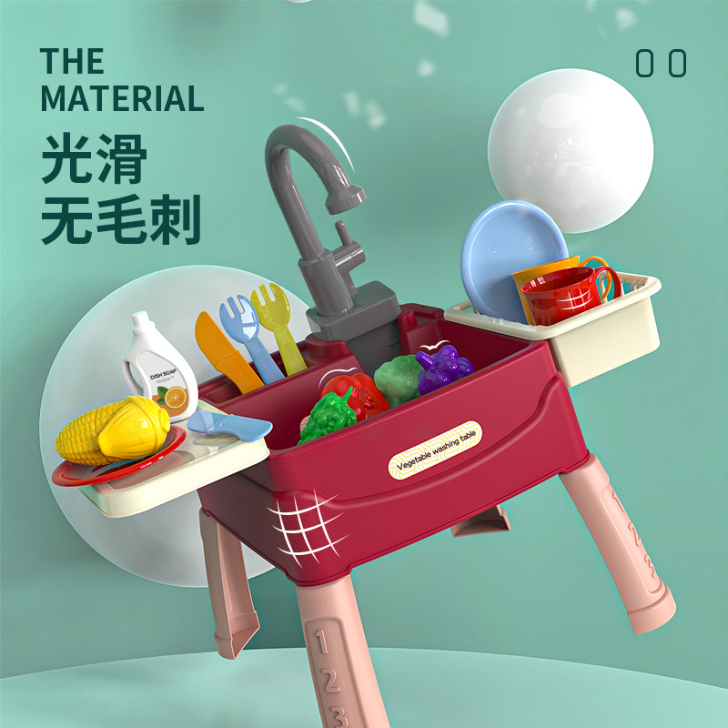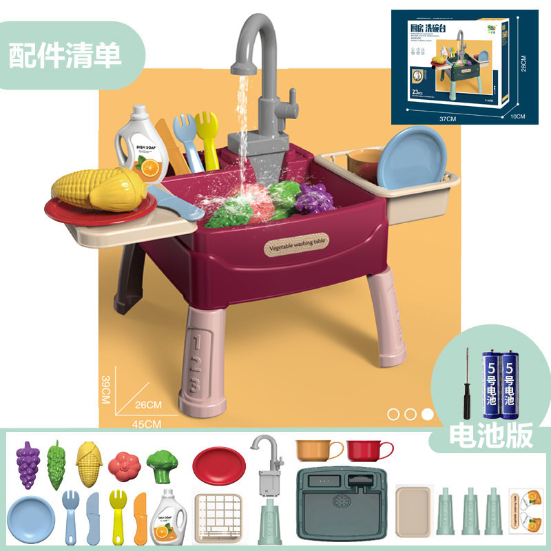 크로스 보더 어린이 식기 세척기 자동 물 세면대 놀이 집 주방 장난감 세트 시뮬레이션 전기 식기 세척 테이블