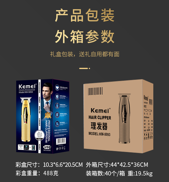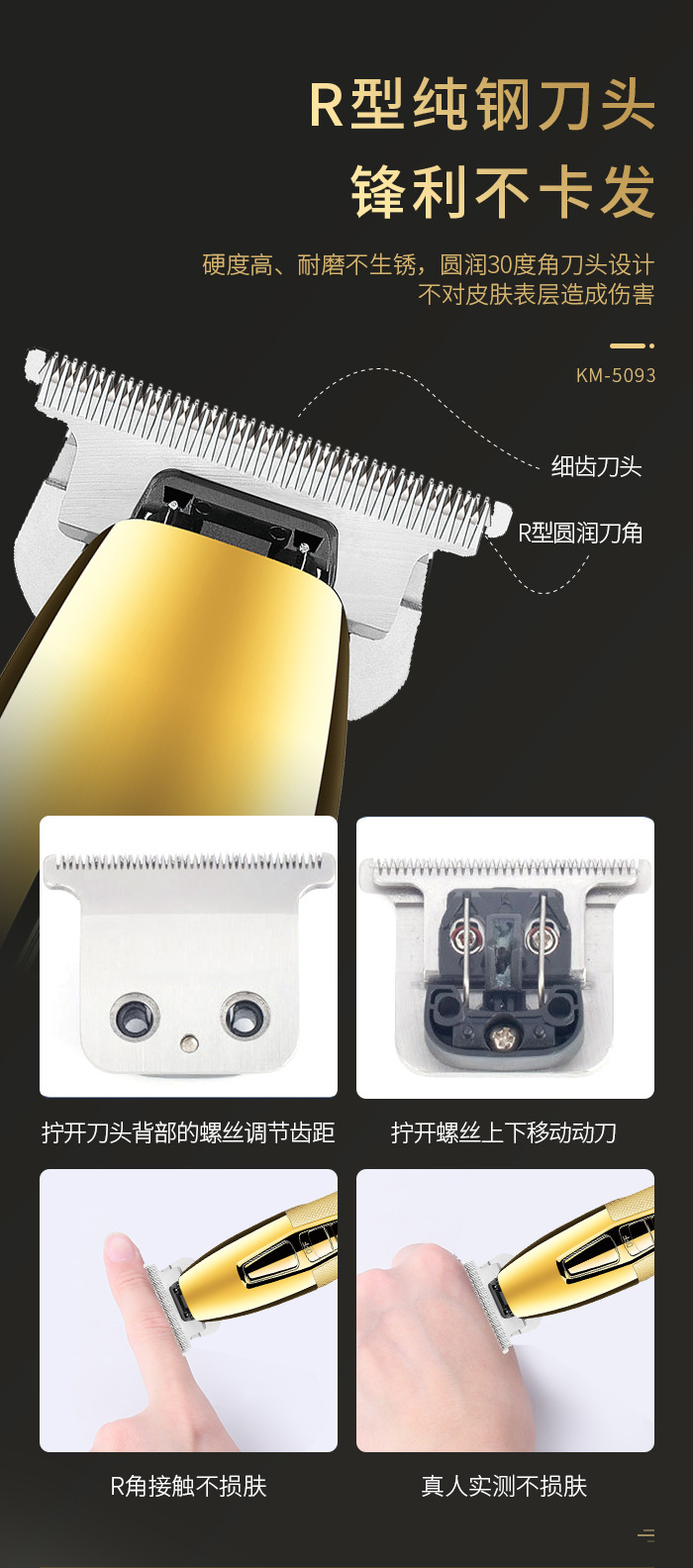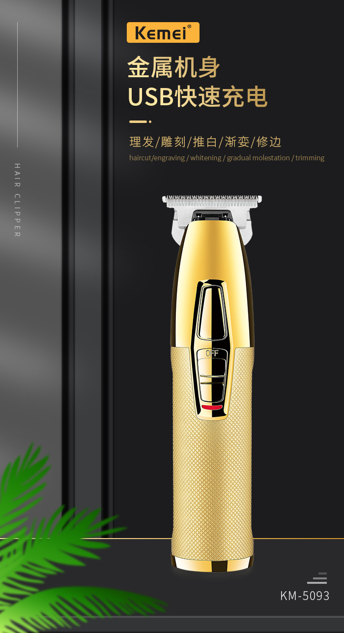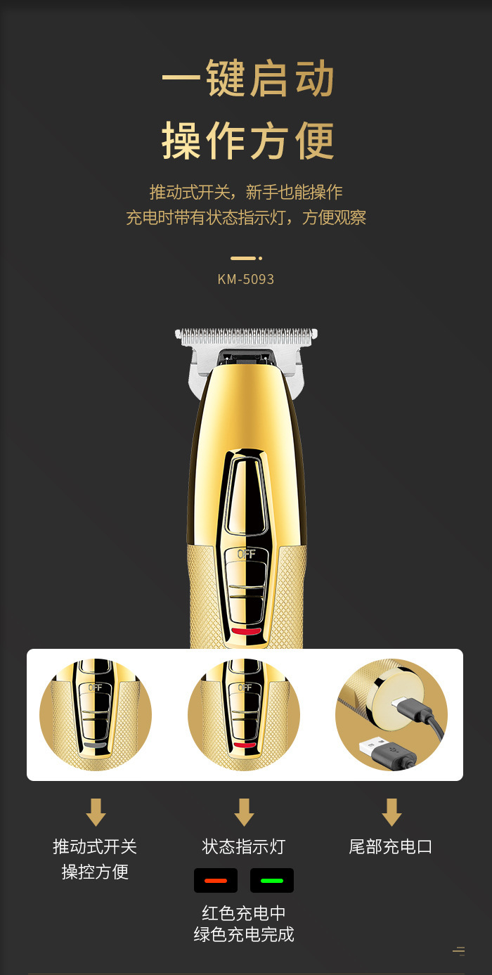 금속 바디 젖빛 미끄럼 방지 USB 빠른 오일 충전 헤드 조각 클리퍼 KM-5093 Kemei 전기 클리퍼스토어 가기