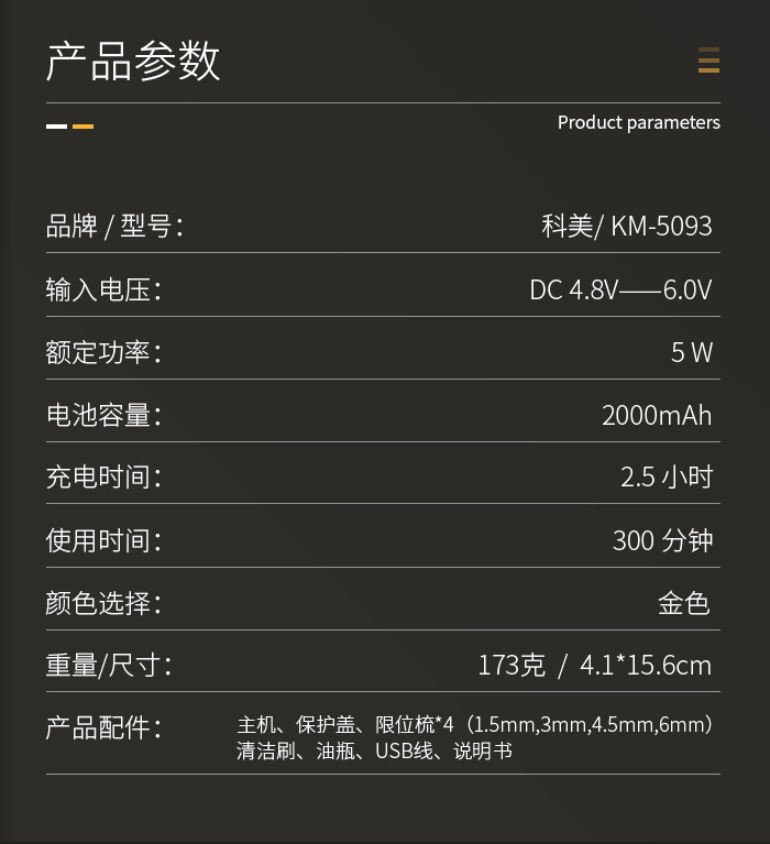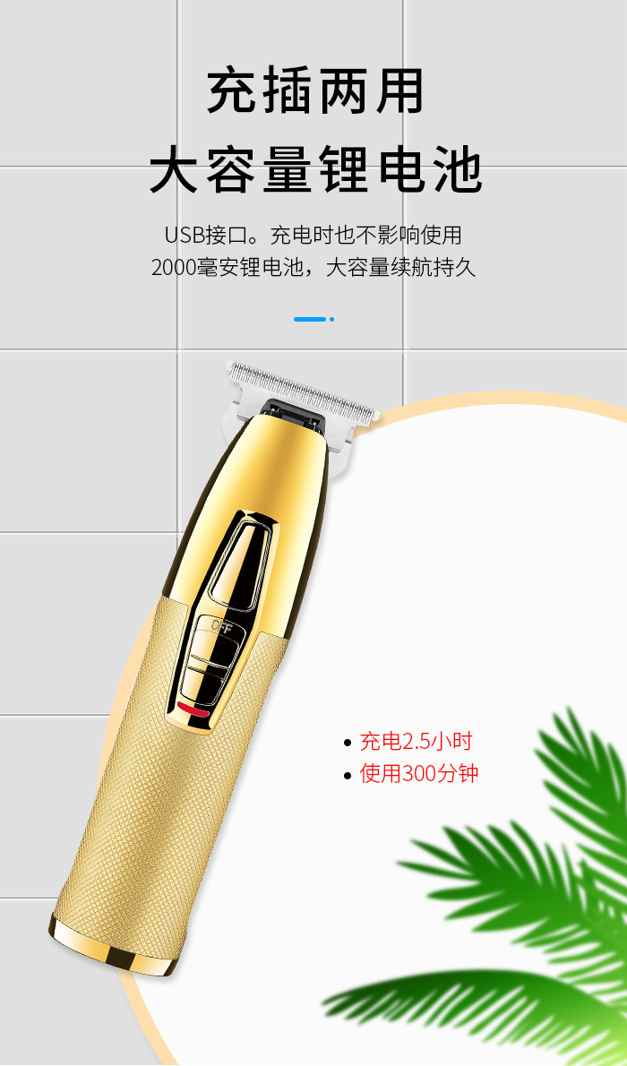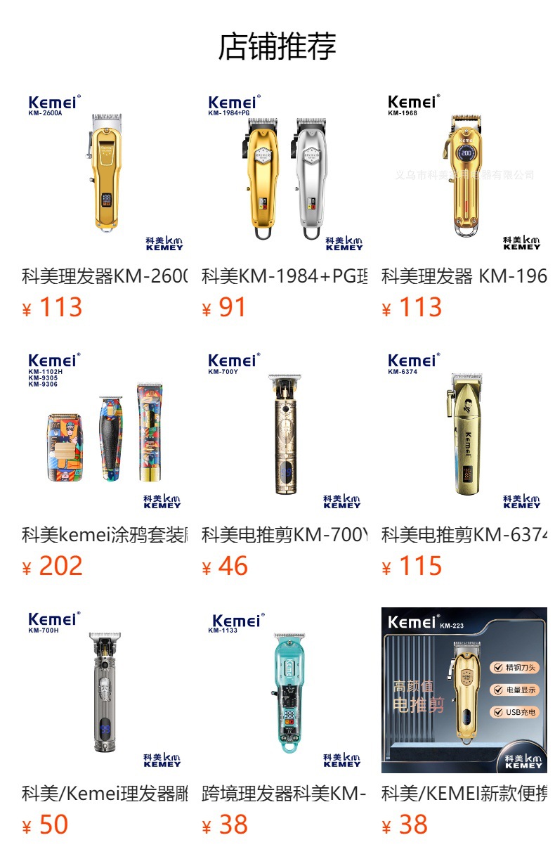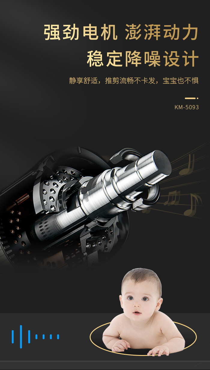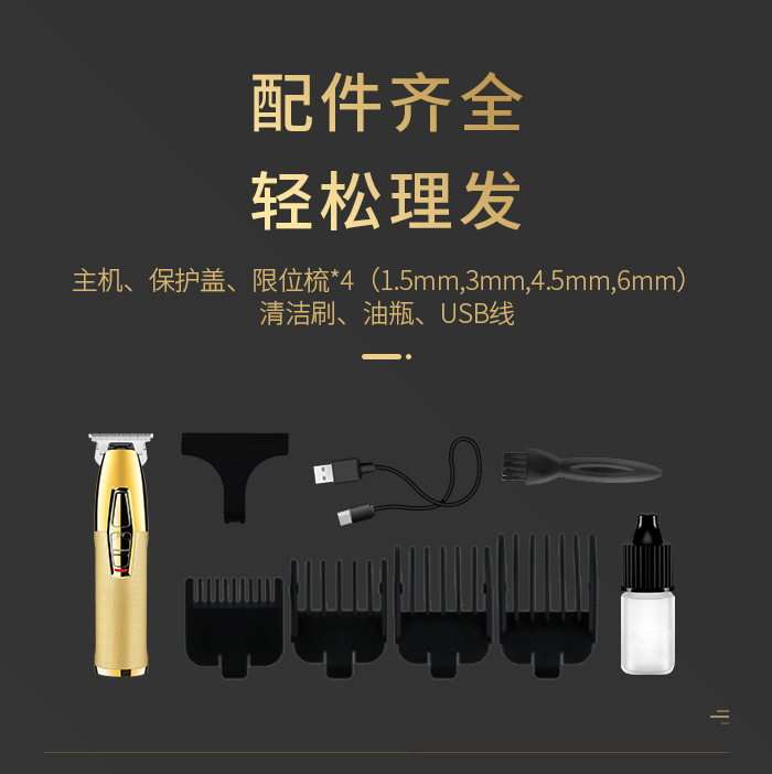 금속 바디 젖빛 미끄럼 방지 USB 빠른 오일 충전 헤드 조각 클리퍼 KM-5093 Kemei 전기 클리퍼스토어 가기