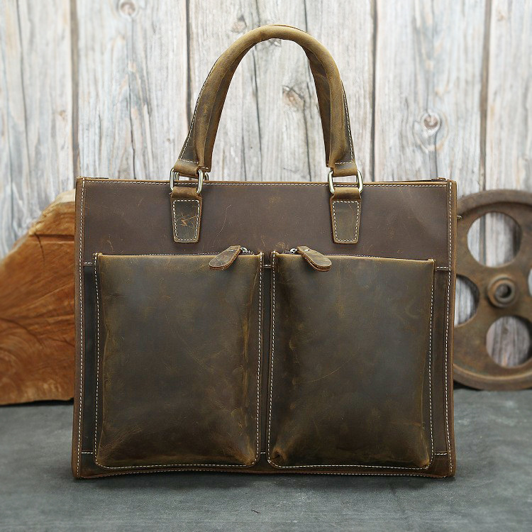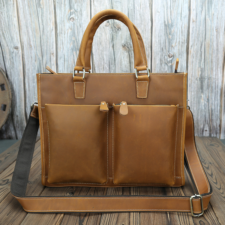 고대 Chaoke 새로운 남성용 노트북 가방 미친 말 가죽 숄더 크로스 바디 백 대용량 정품 가죽 15 인치 서류 가방