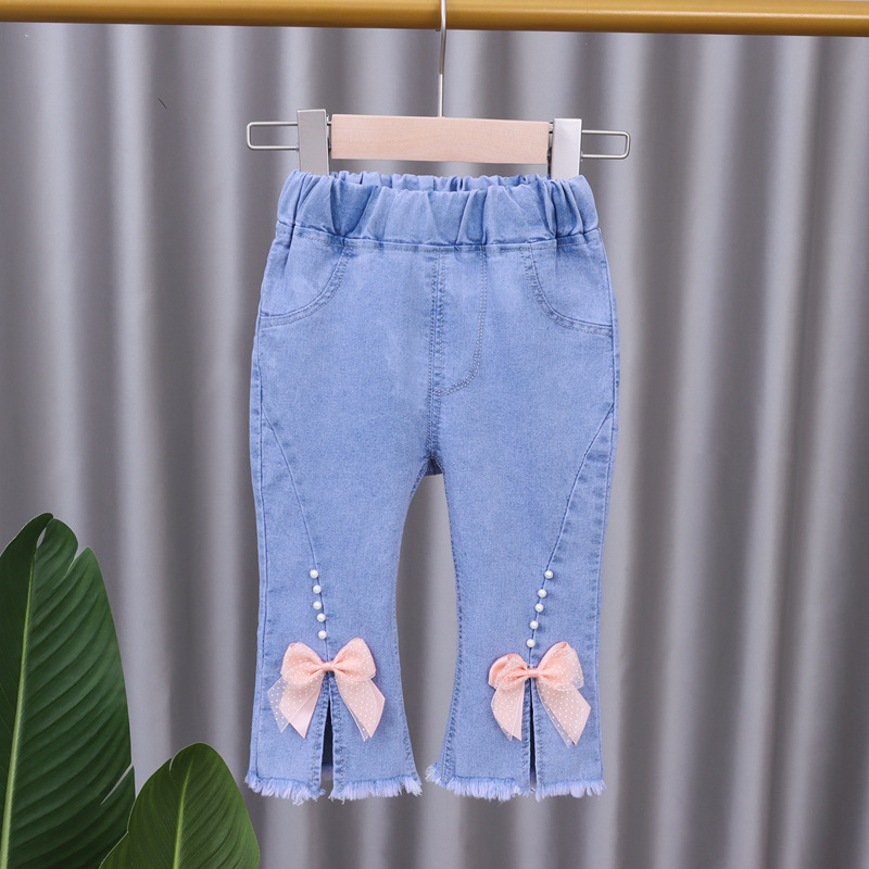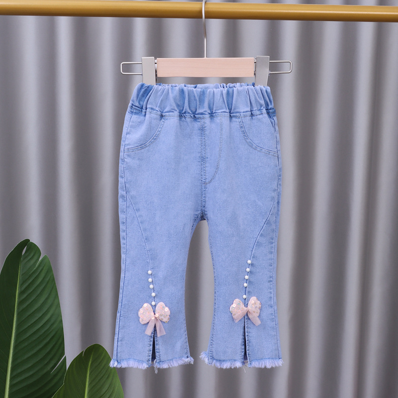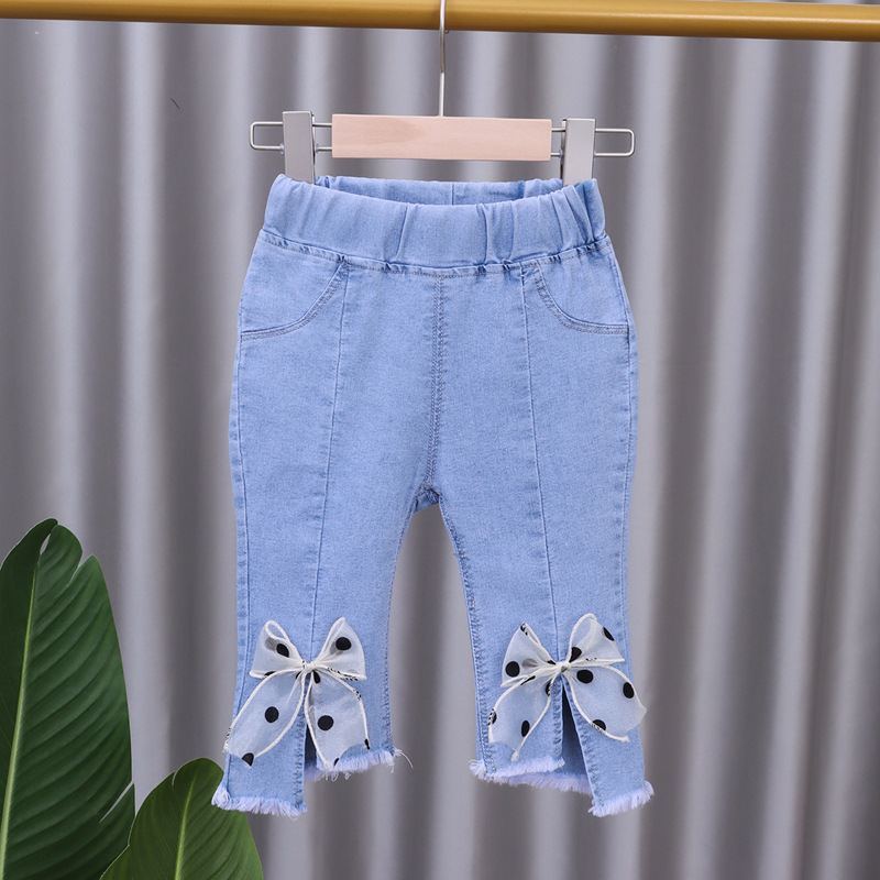 여아 청바지 여름 착용 2025 새로운 스타일 하이 웨이스트 아동용 중간 바지 아기 소녀 스트레치 캐주얼 7부 바지스토어 가기